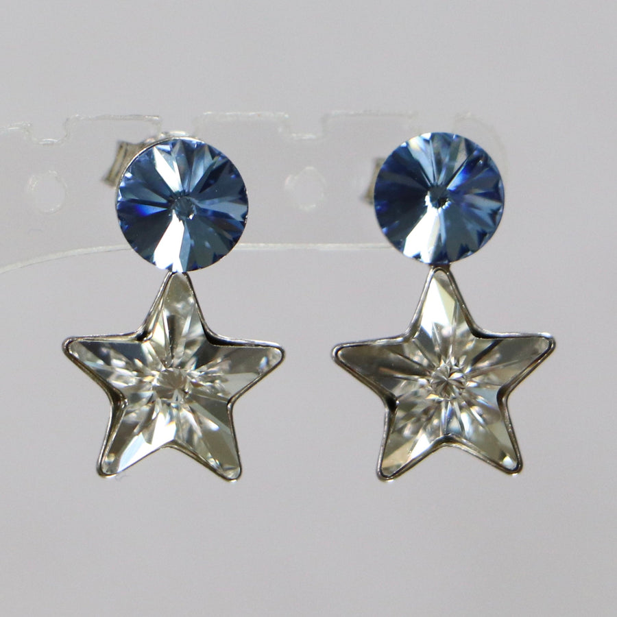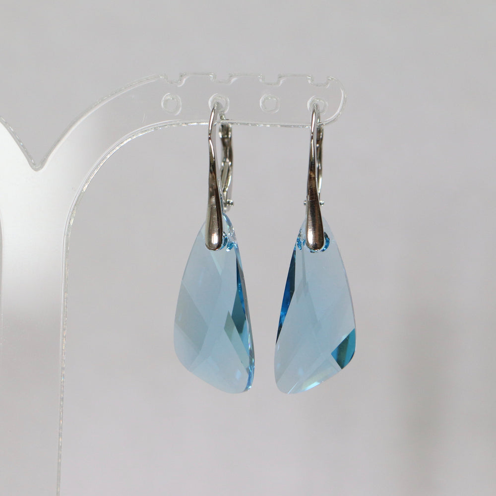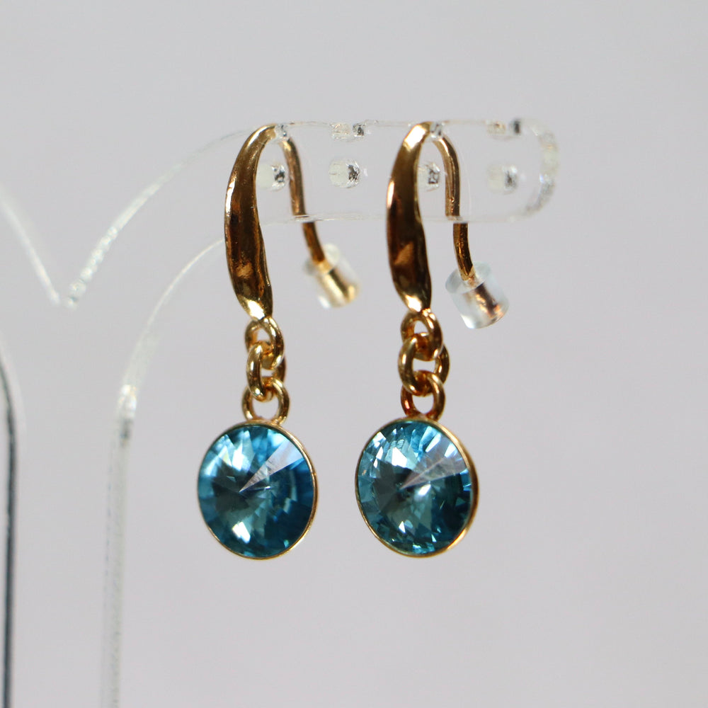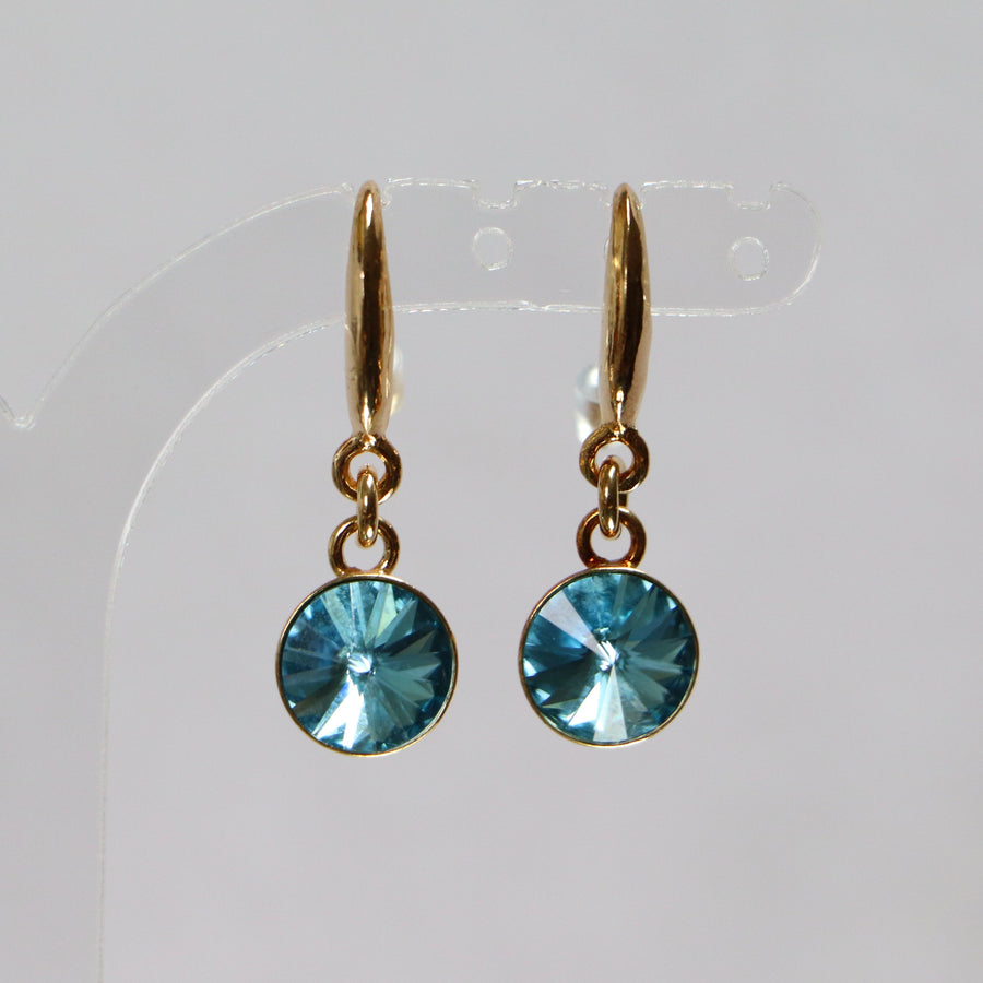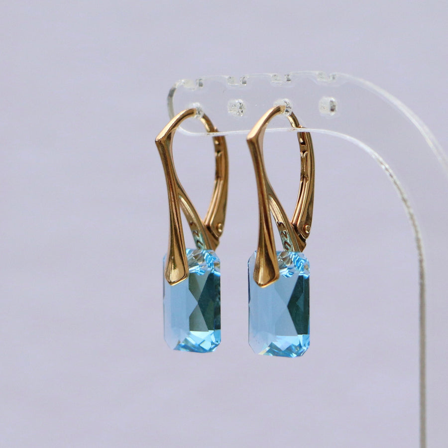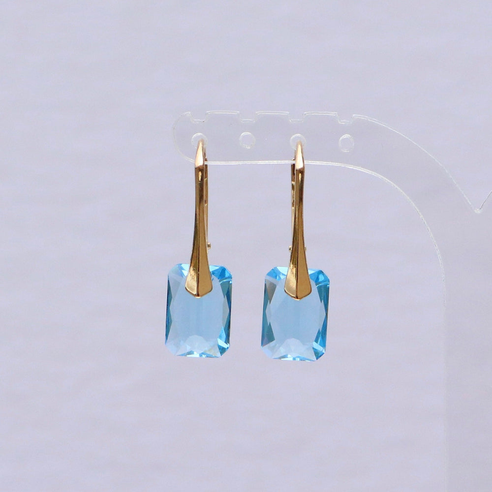 Boucles d'oreilles, cristaux Swarovski, argent doré, bleu aquamarine, ALICIA