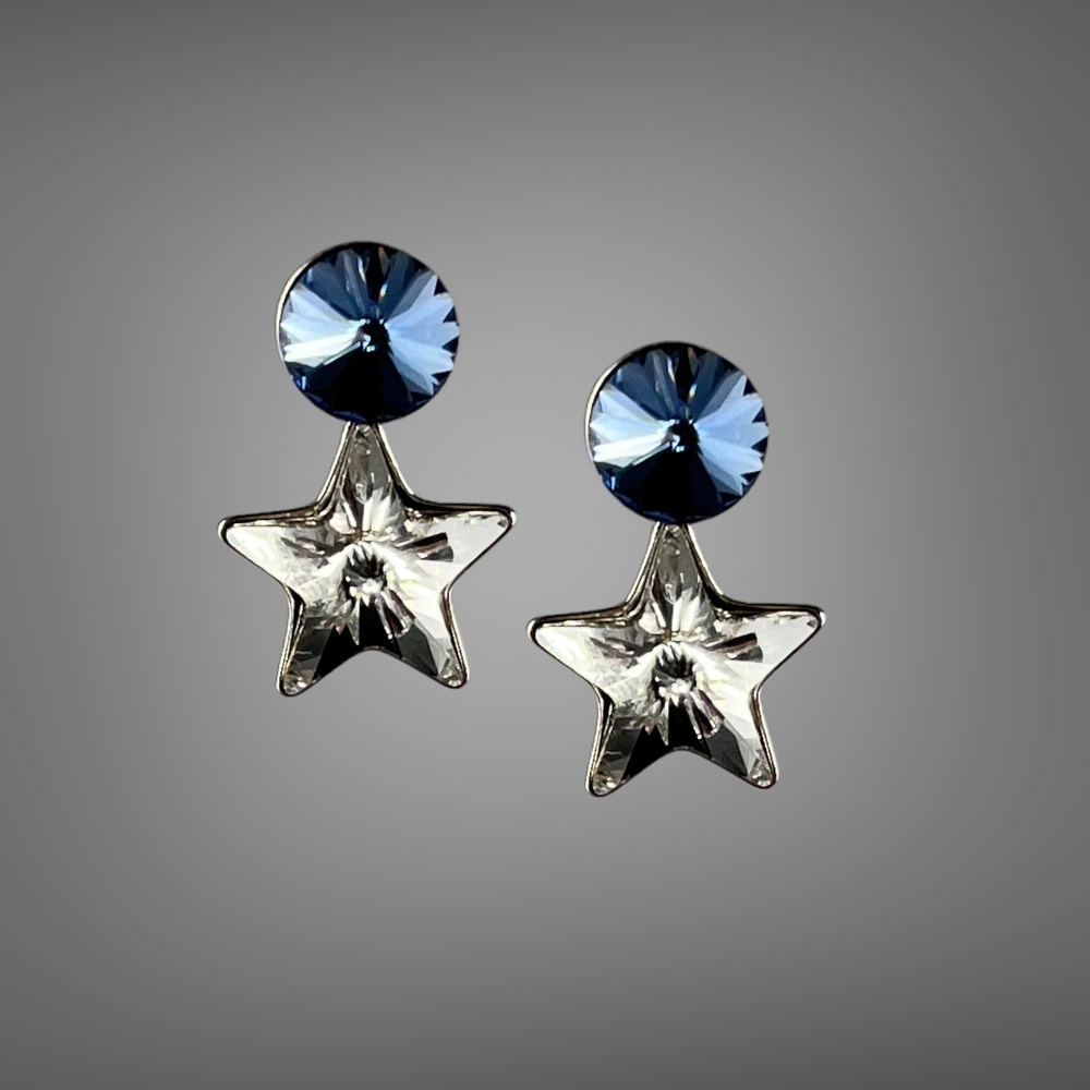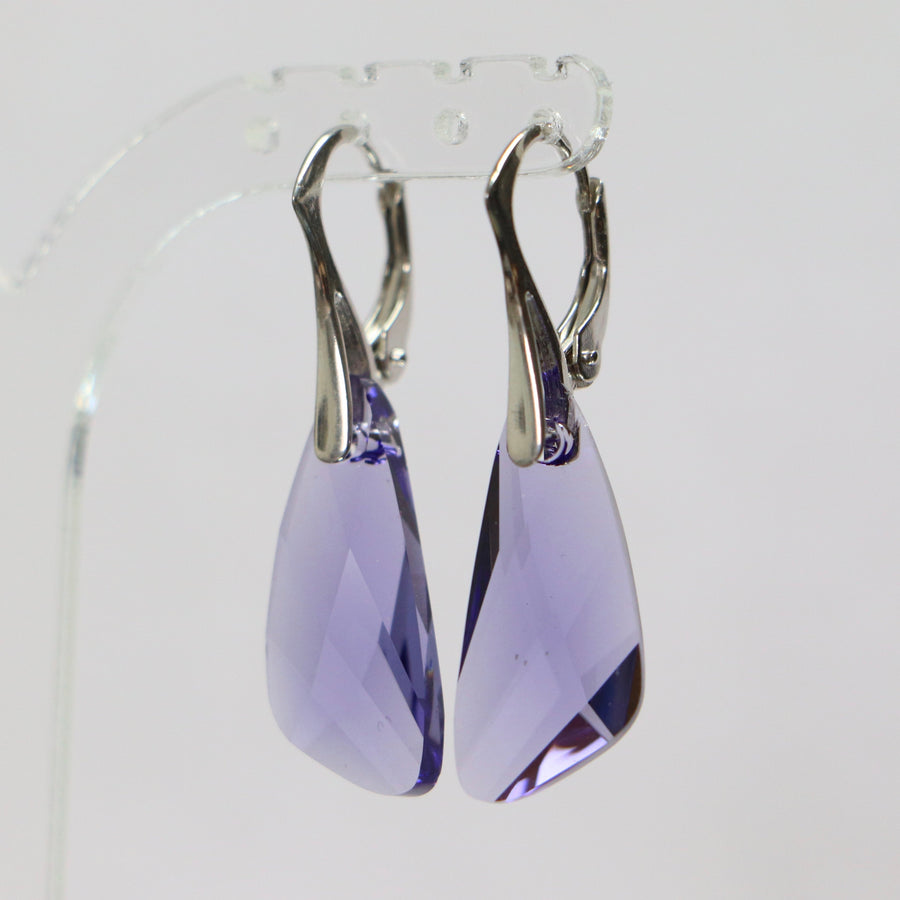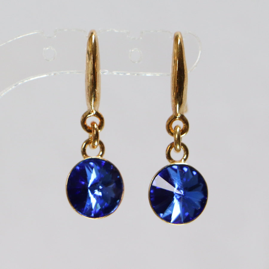 Boucles d'oreilles, cristaux Swarovski, argent doré, bleu tanzanite, ALICIA
