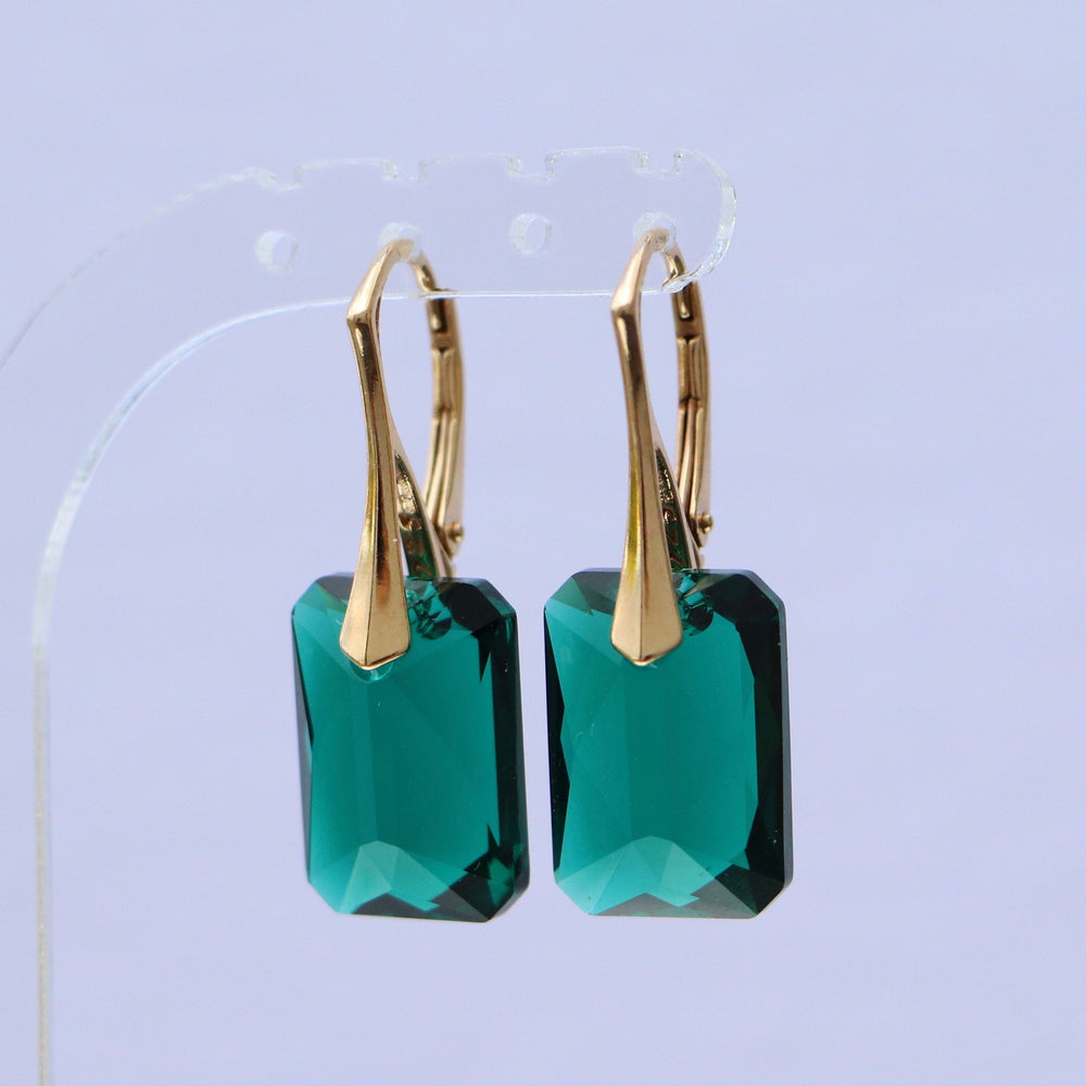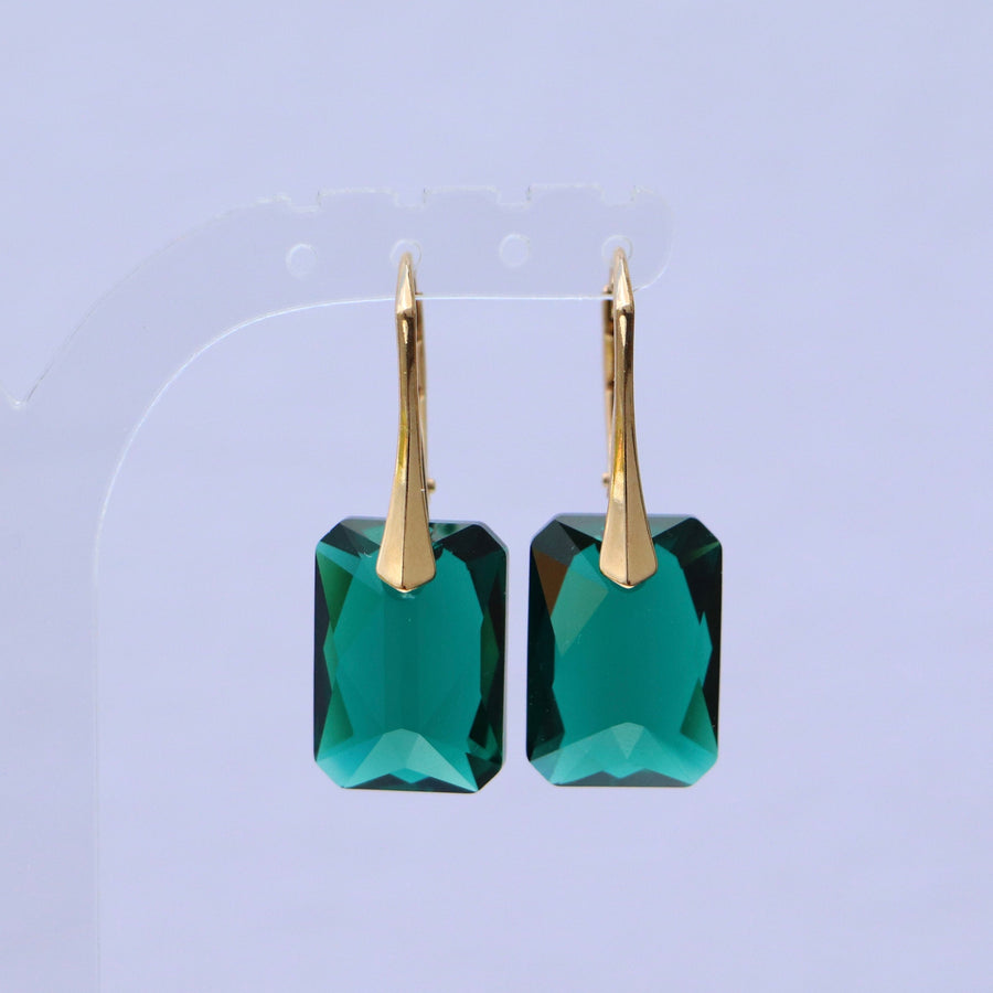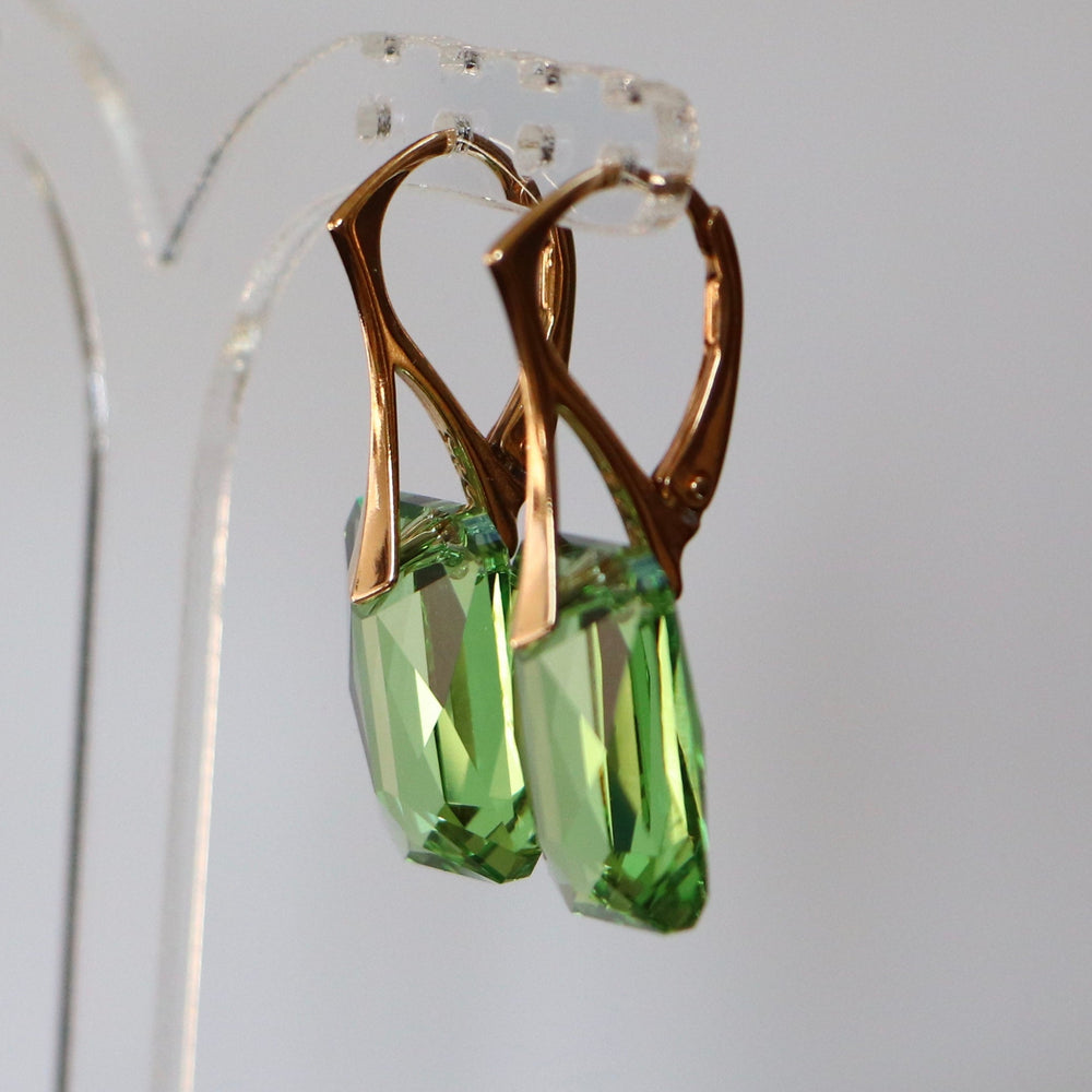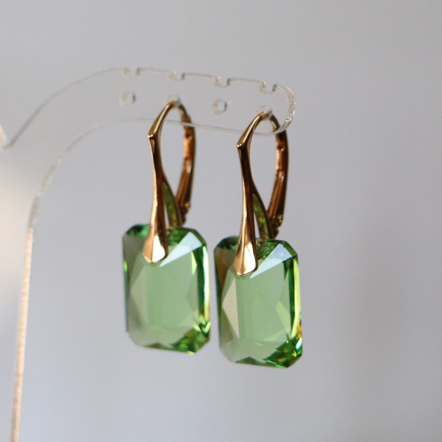 Boucles d'oreilles avec cristaux Swarovski, vert olive, argent doré, CARRE