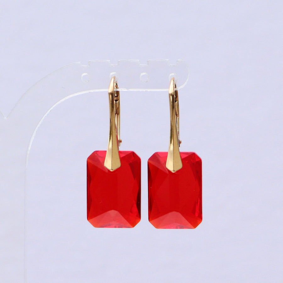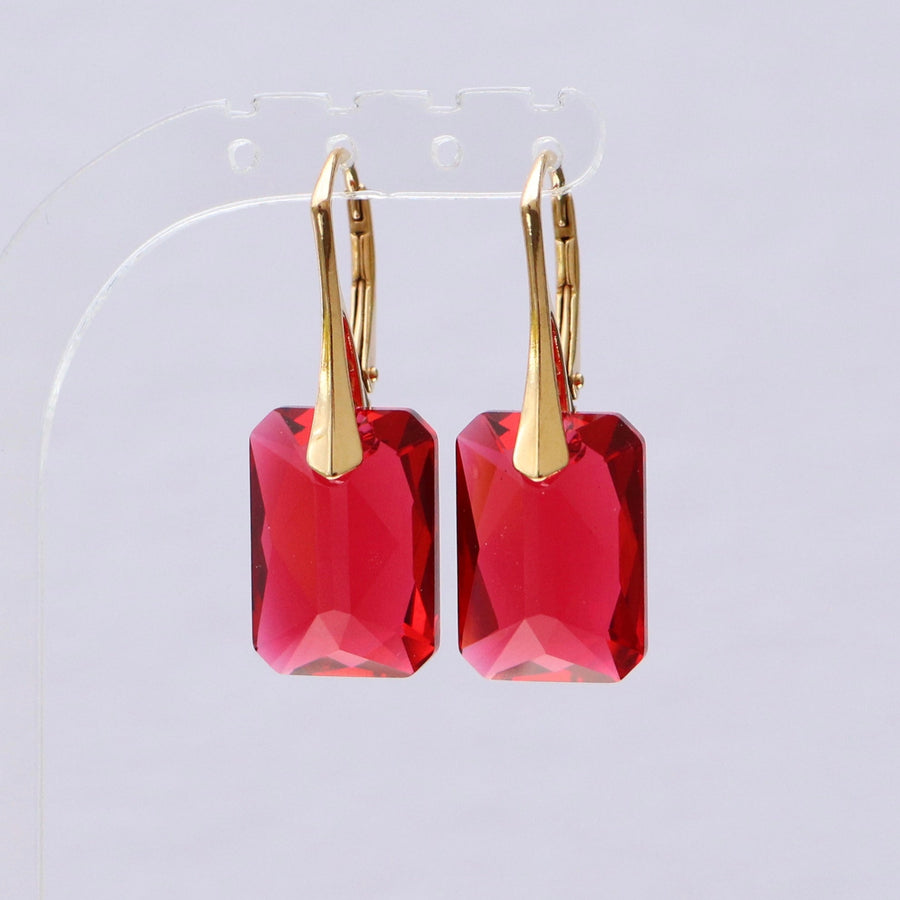 Boucles d'oreilles avec cristaux Swarovski, rouge vive, argent doré, CARRE