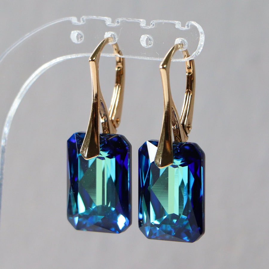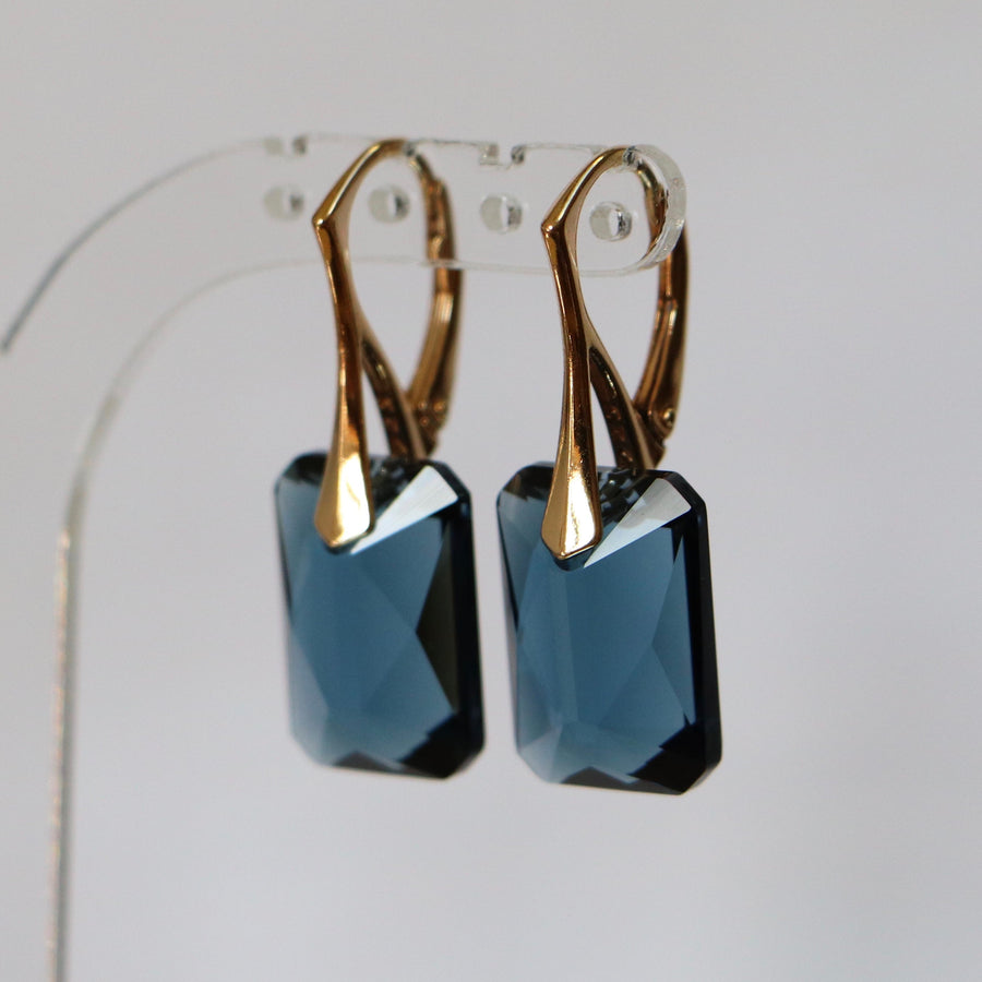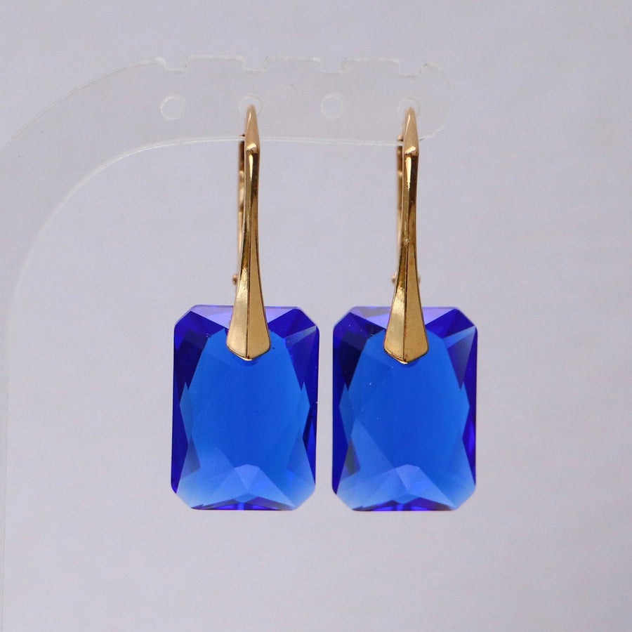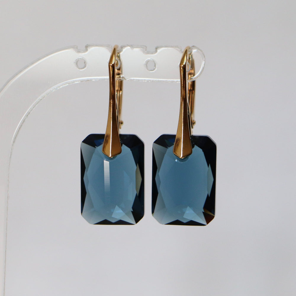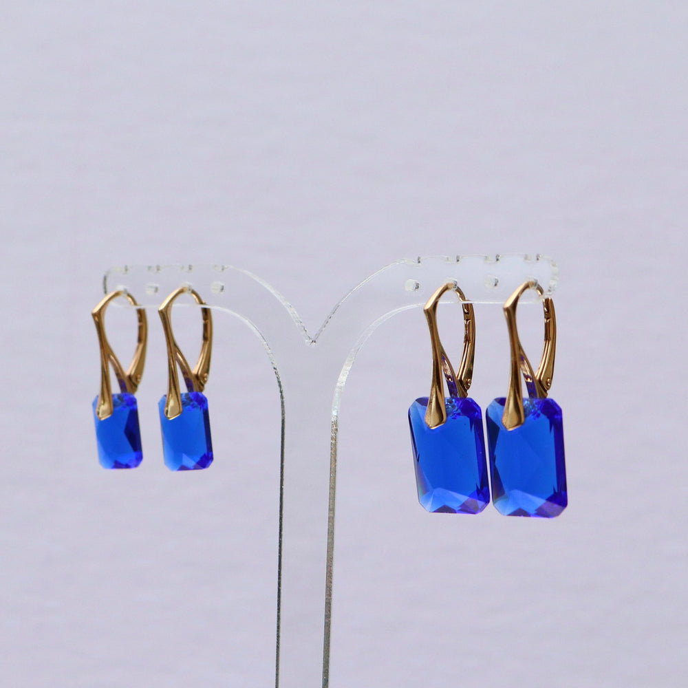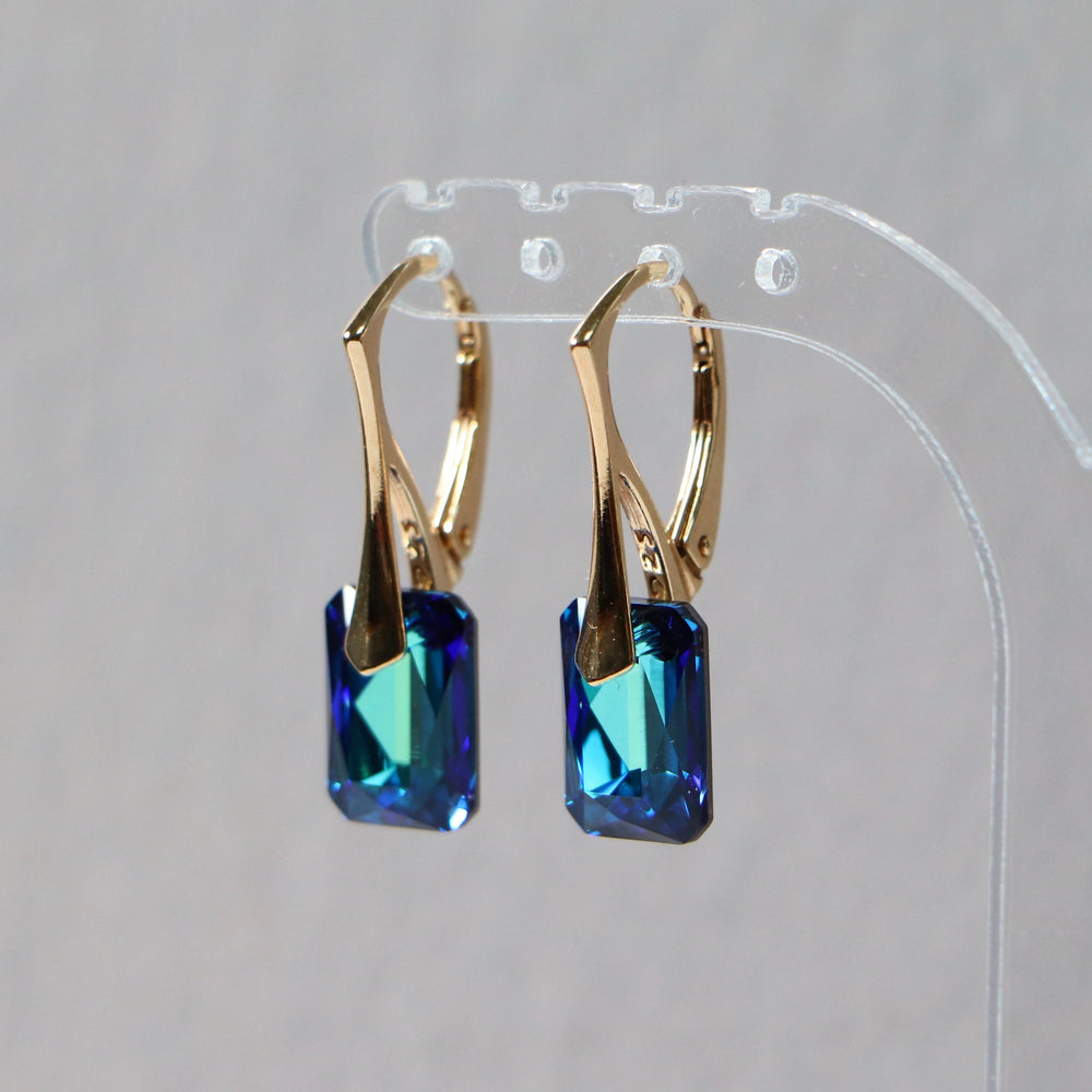 Boucles d'oreilles avec cristaux Swarovski, bleu, argent doré, CARRE