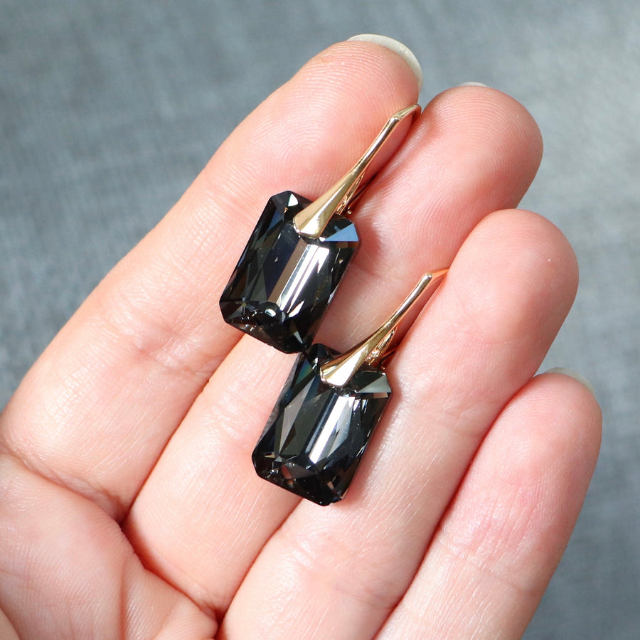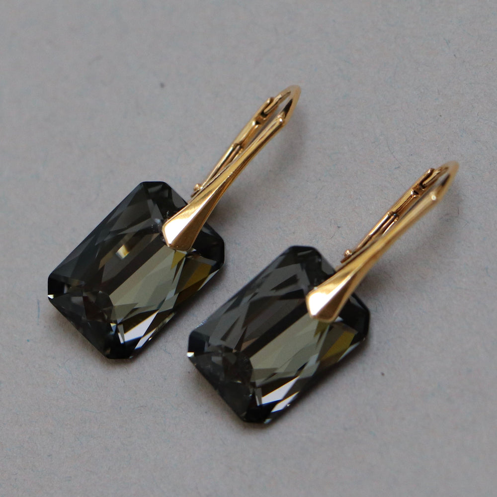 Boucles d'oreilles avec cristaux Swarovski, gris argenté, argent doré, CARRE