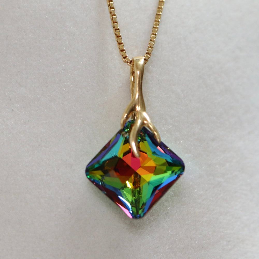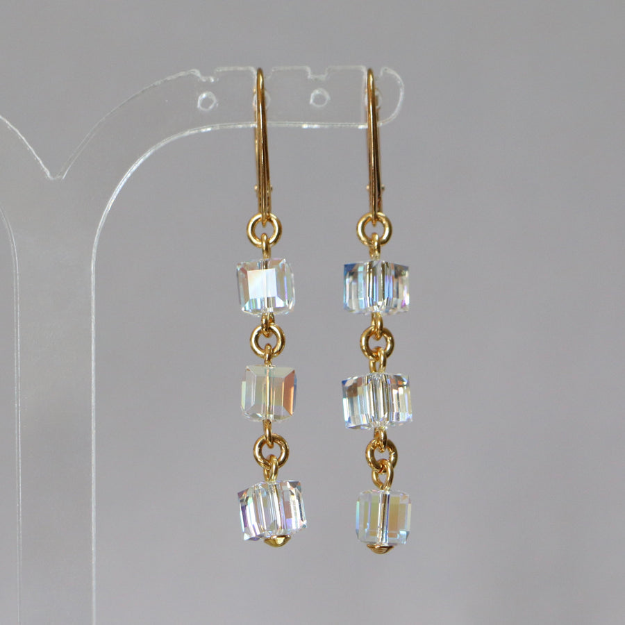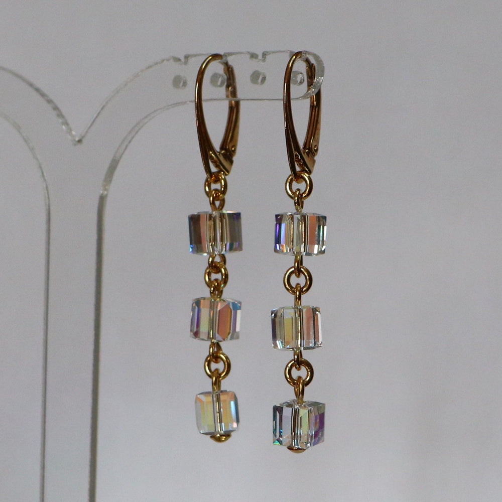 Boucles d'oreilles avec cristaux Swarovski, cristal AB, argent doré, CARRE