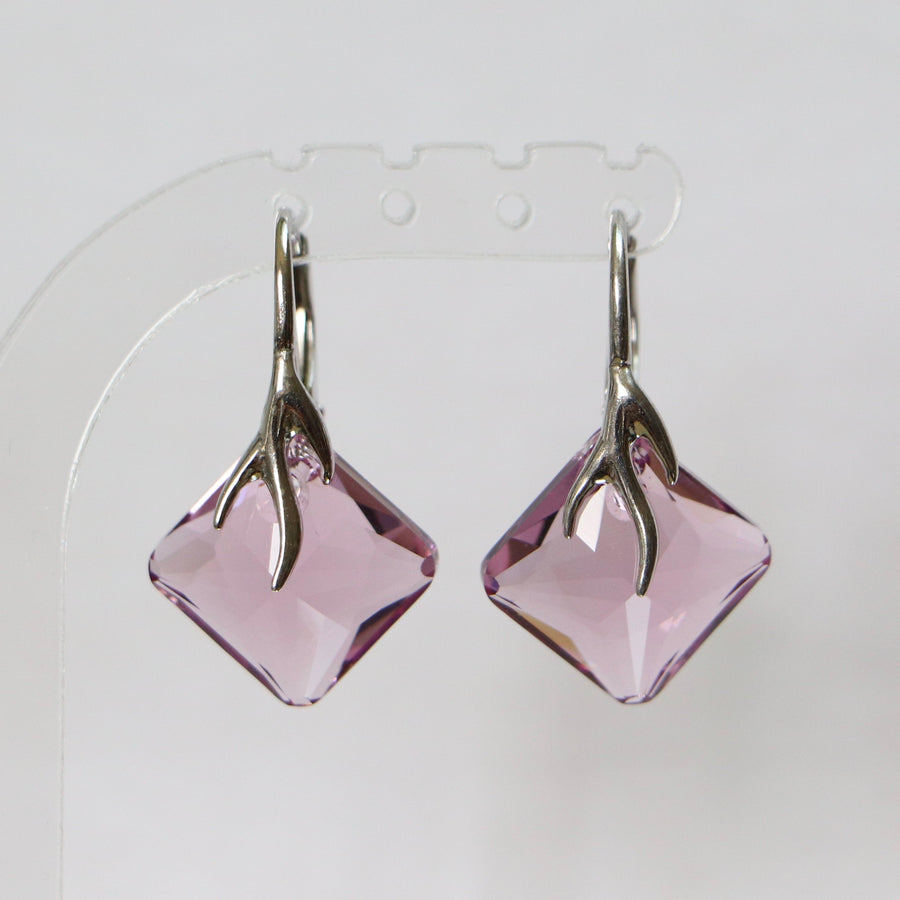 Boucles d'oreilles, cristaux Swarovski, argent doré, rouge, 3CARRE