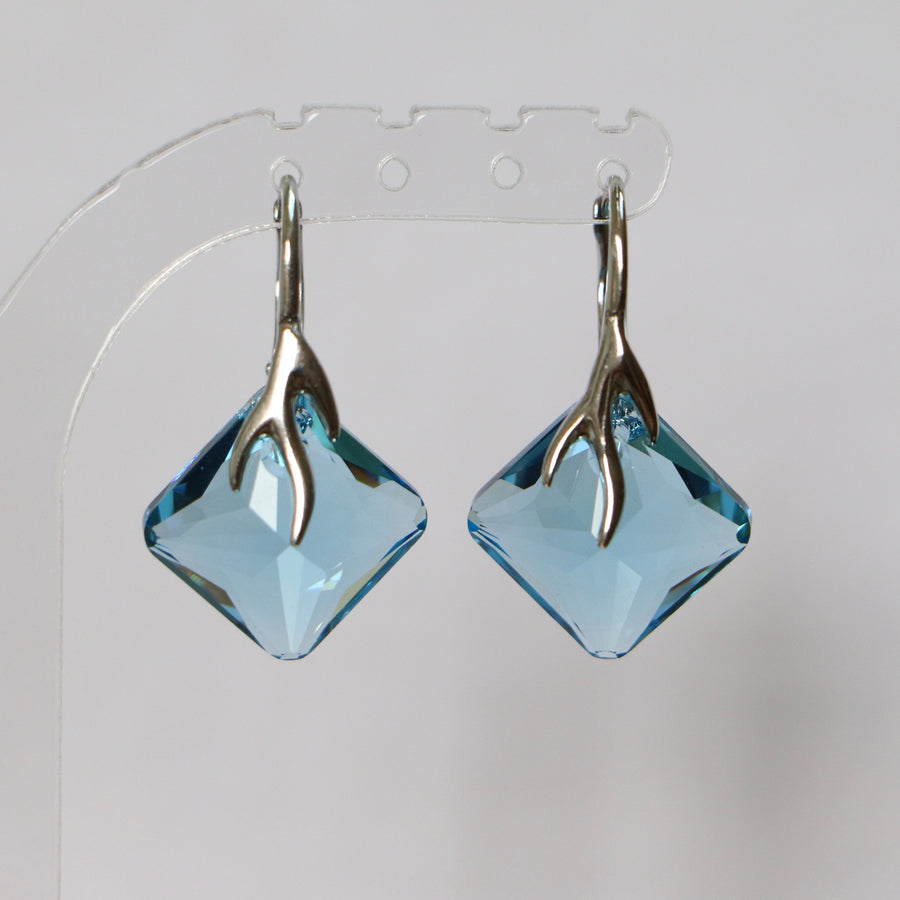 Bracelet avec cristaux Swarovski, bleu, argent doré, CARRE