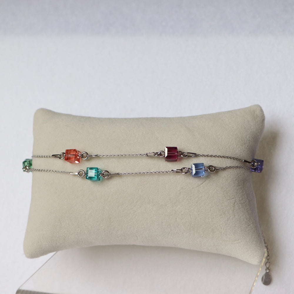 Bracelet avec cristaux Swarovski, rouge vive, argent doré, CARRE