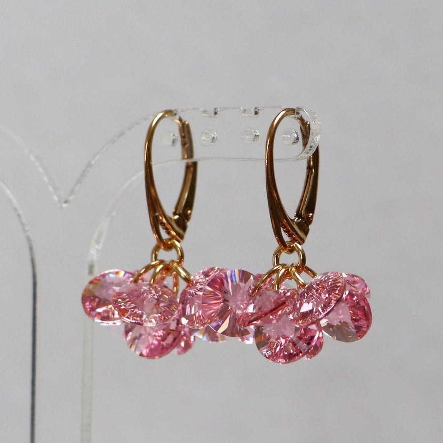 Boucles d'oreilles avec cristaux Swarovski, rose clair, argent doré, MARGOT
