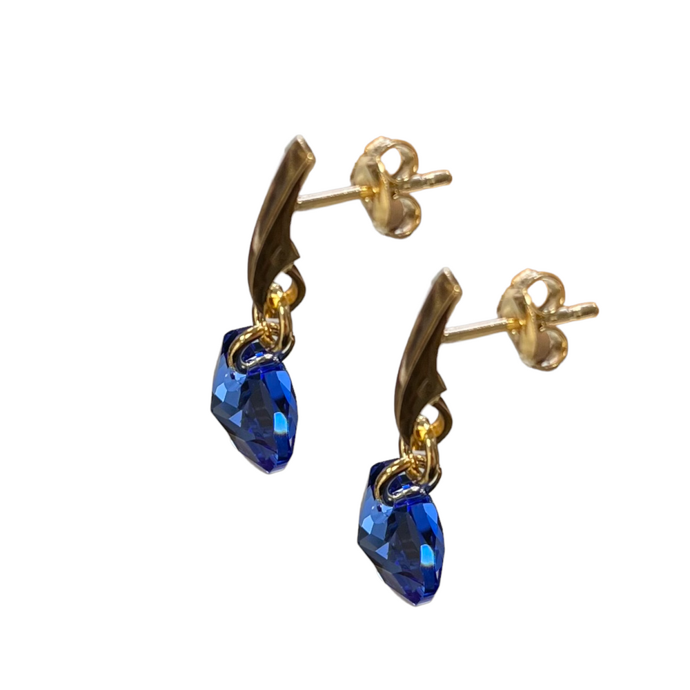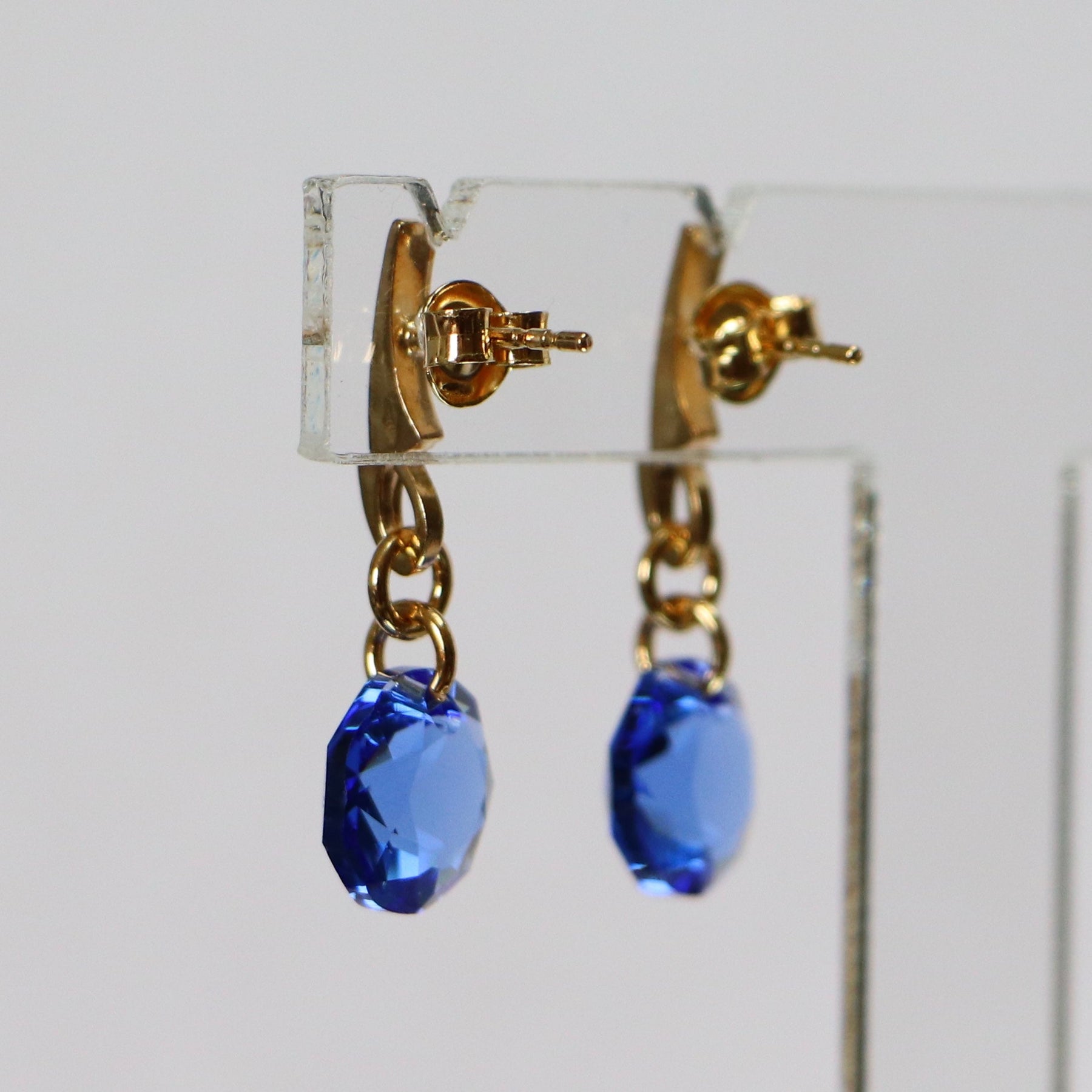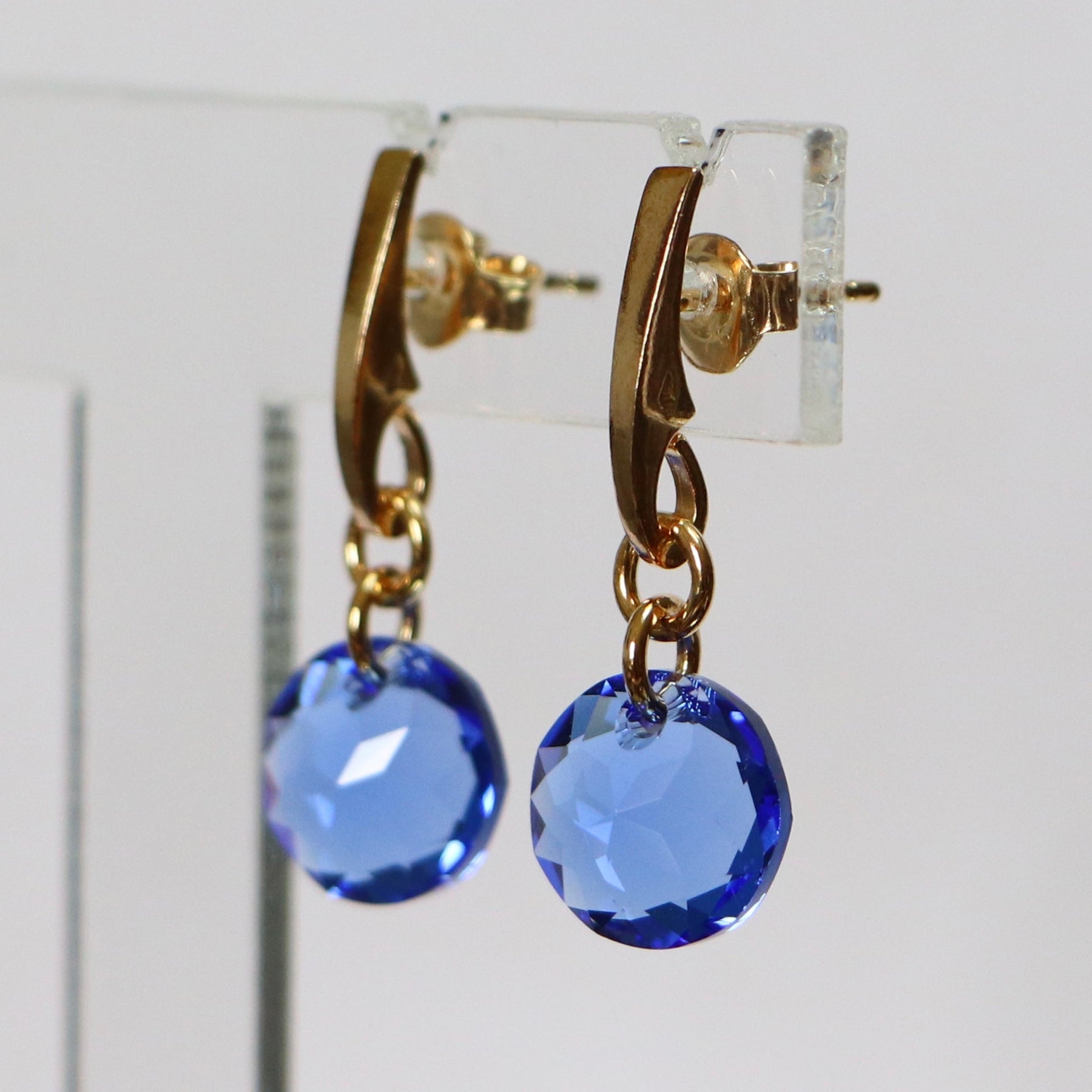 Boucles d'oreilles, cristaux Swarovski, argent doré, bleu, BONBON