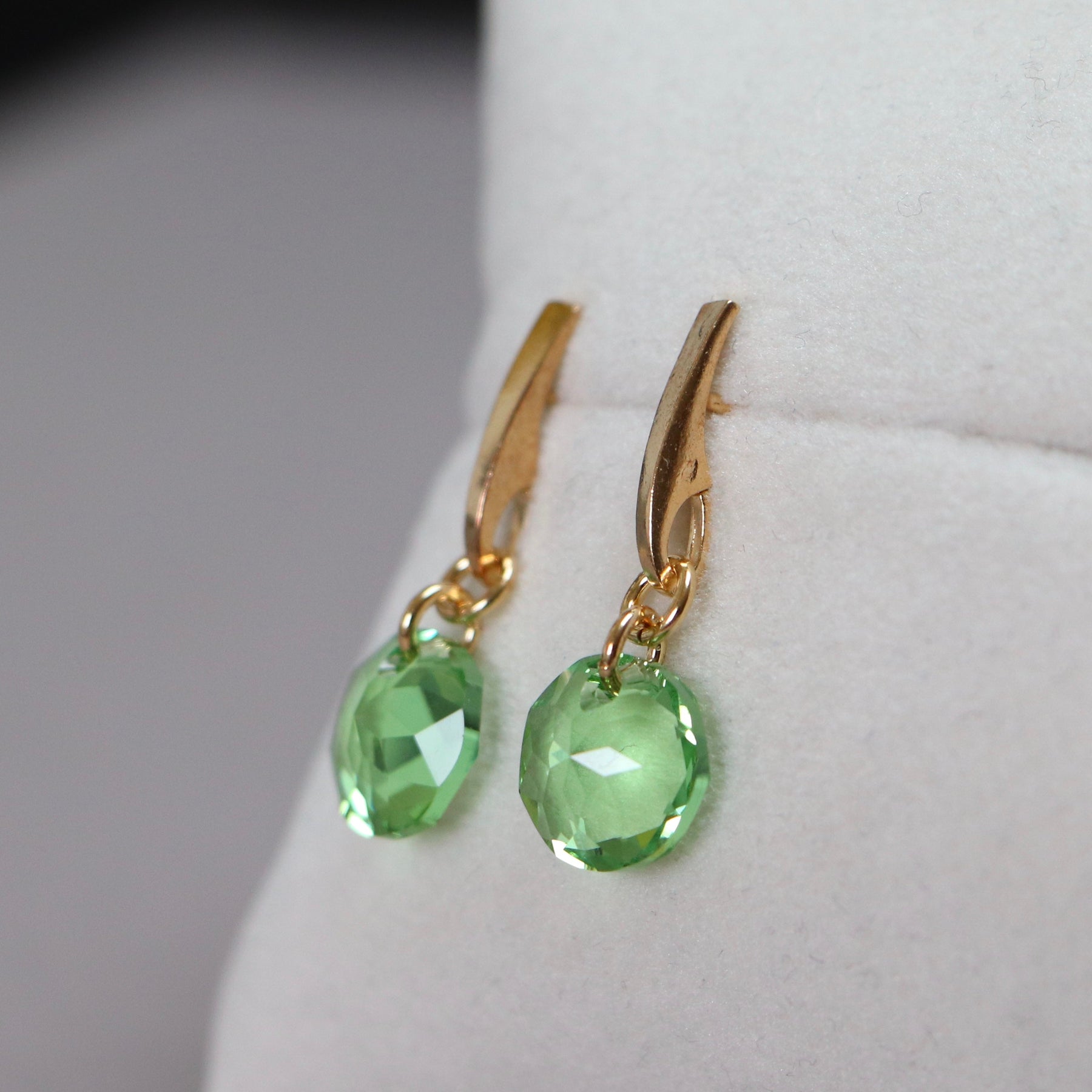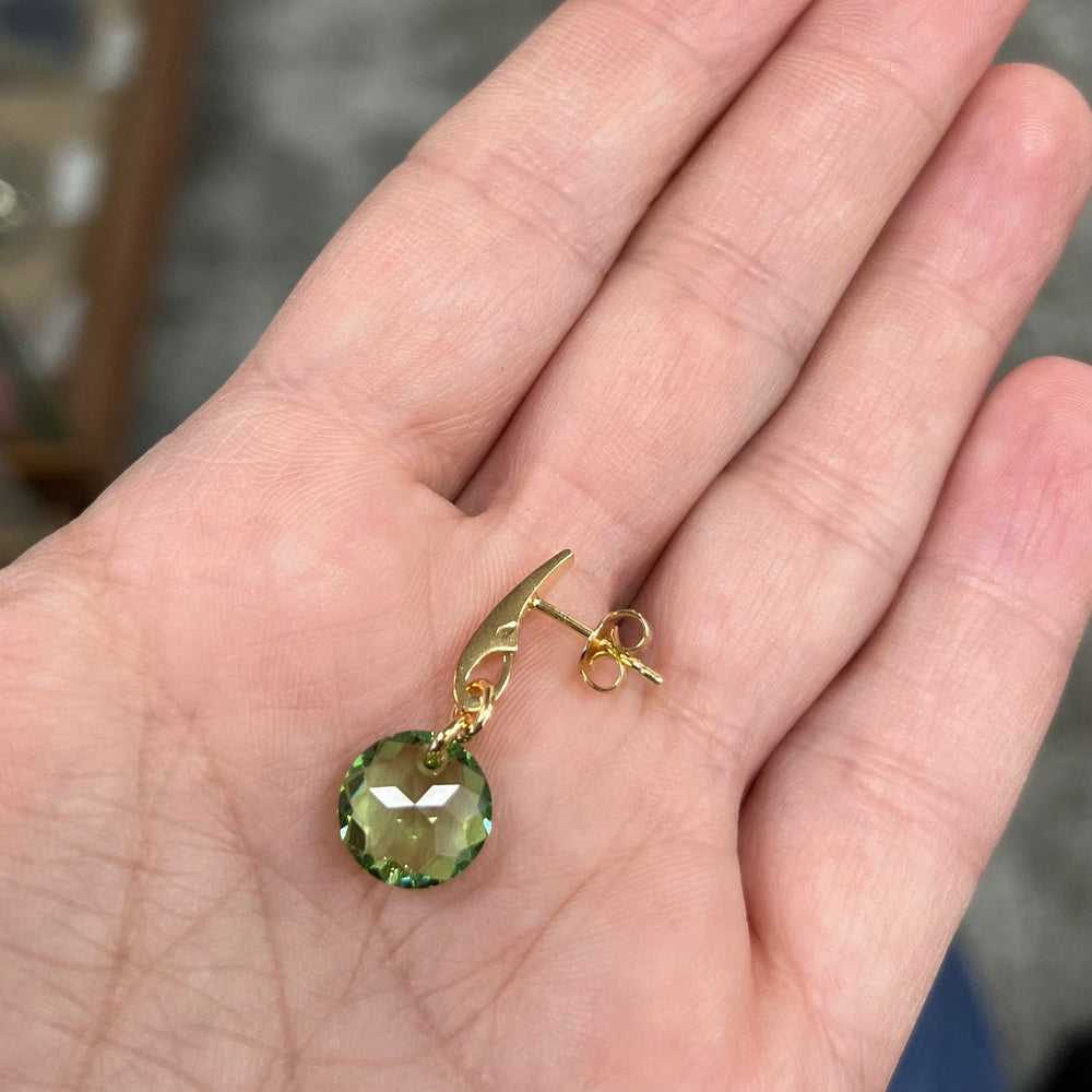 Boucles d'oreilles, cristaux Swarovski, argent doré, vert olive, BONBON