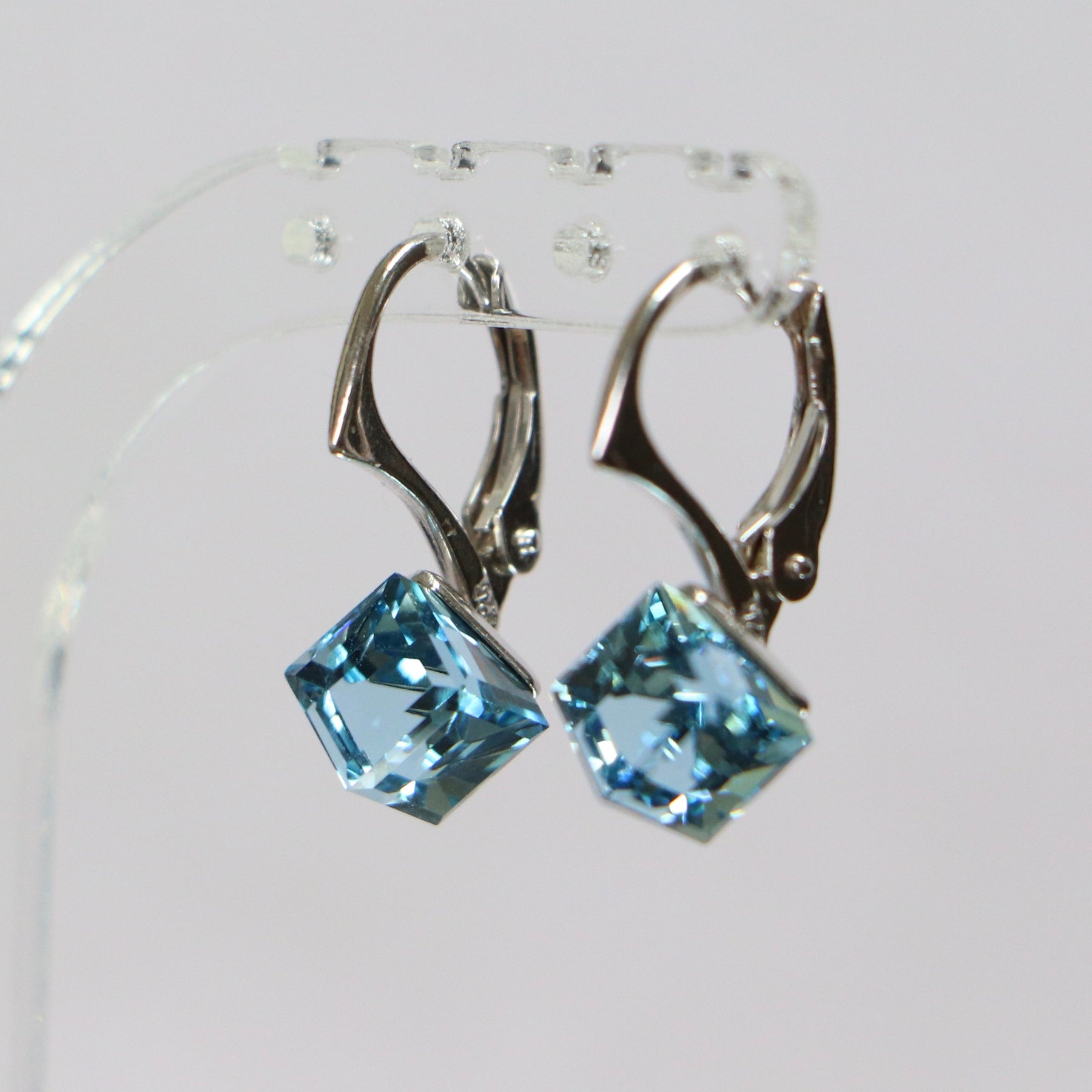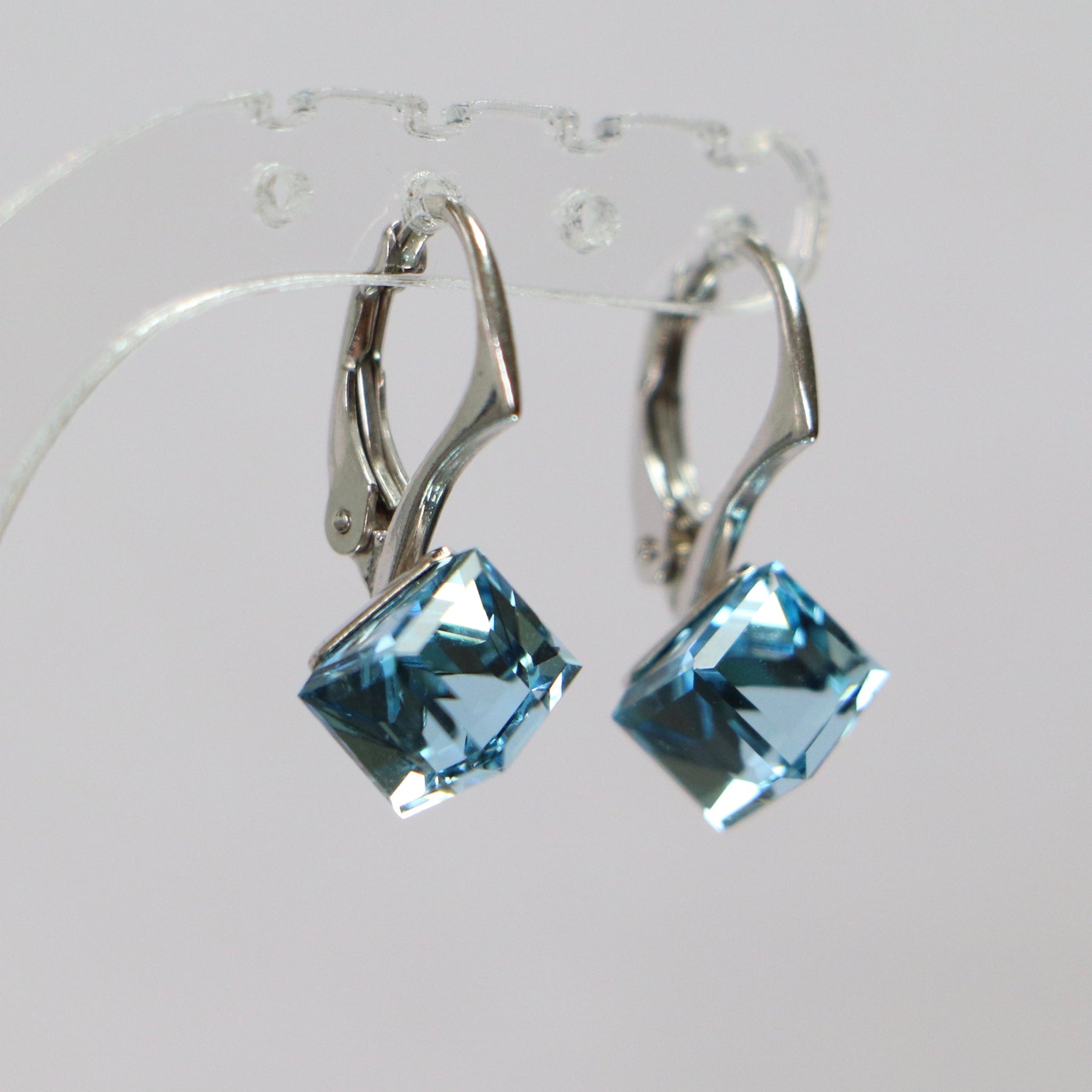 Boucles d'oreilles, cristaux Swarovski, argent rhodié, bleu aquamarine, CUBIC