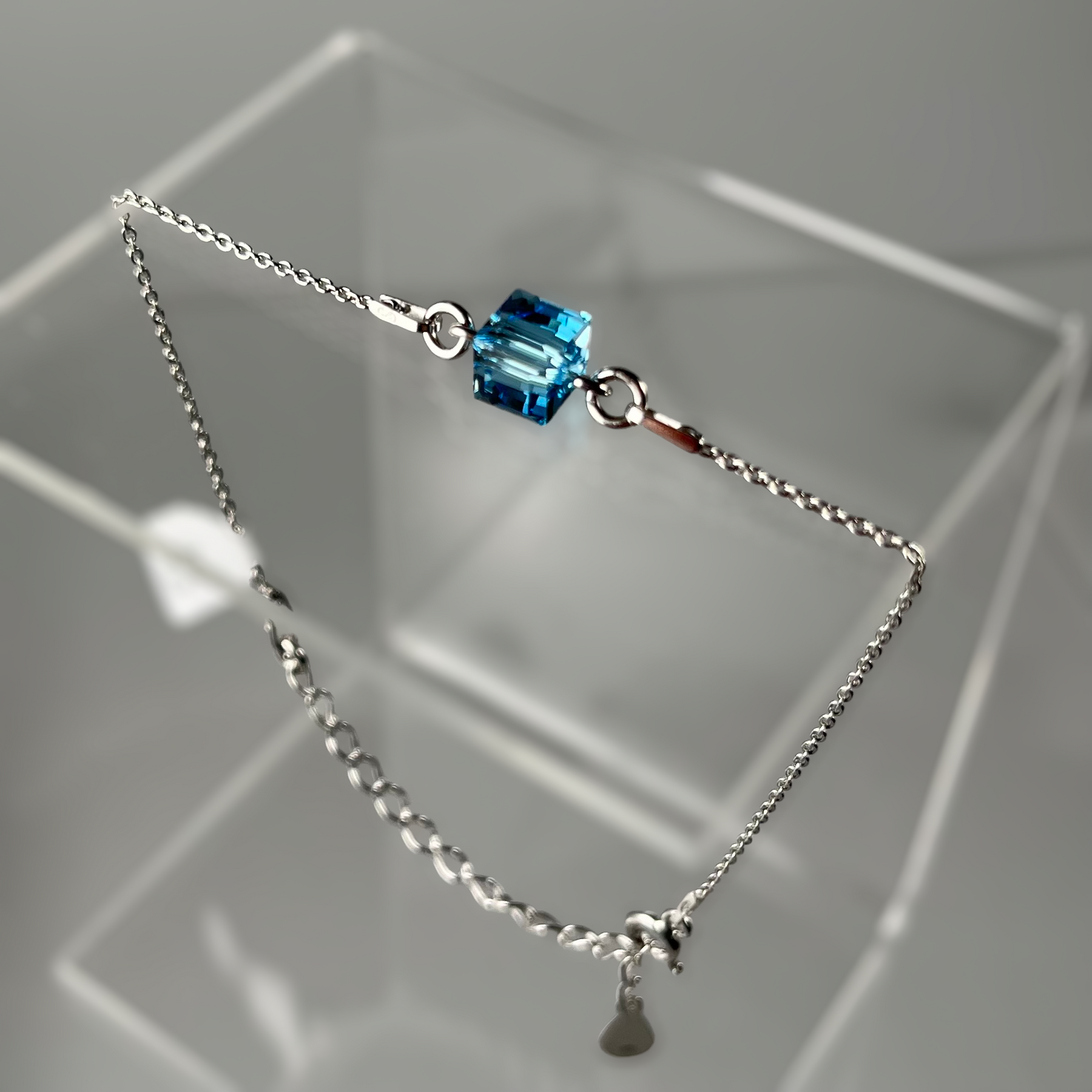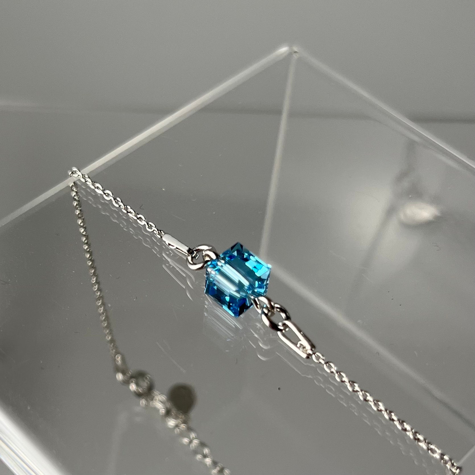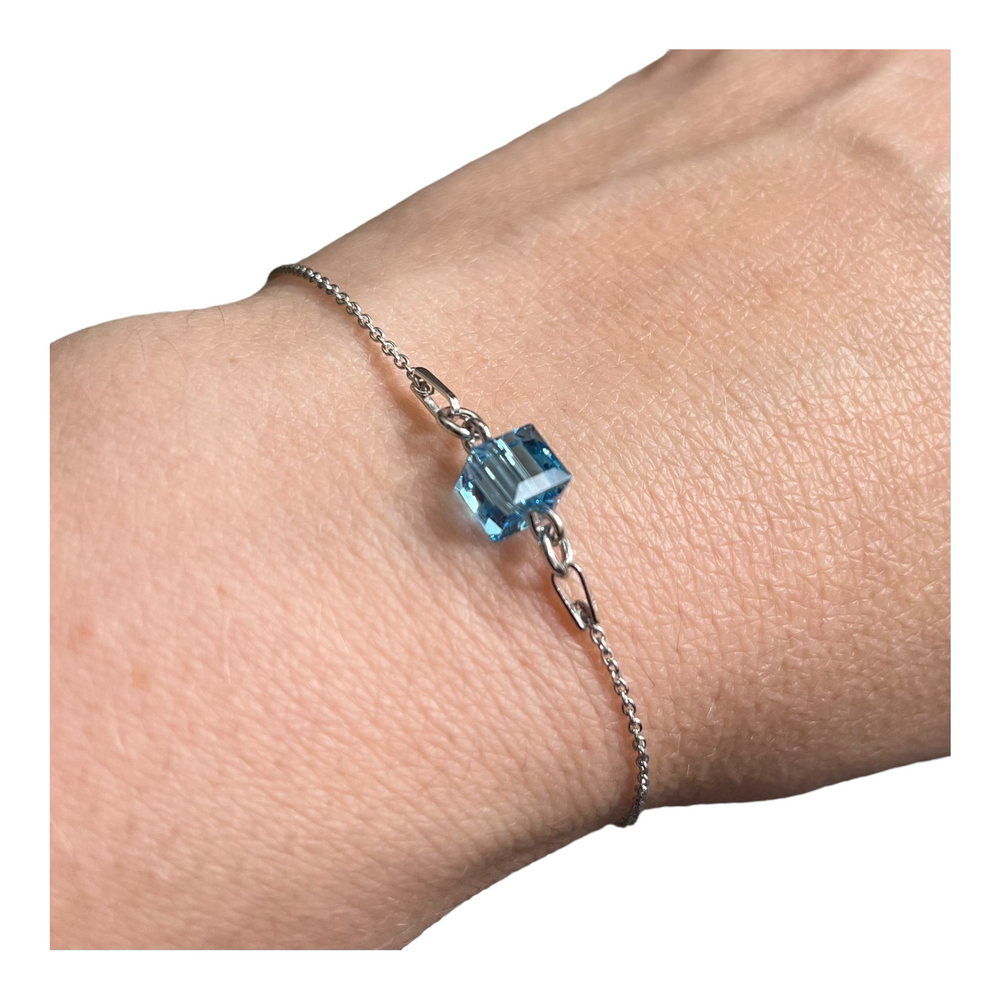 Bracelet avec cristaux Swarovski, argent rhodié, bleu aquamarine, CARRE