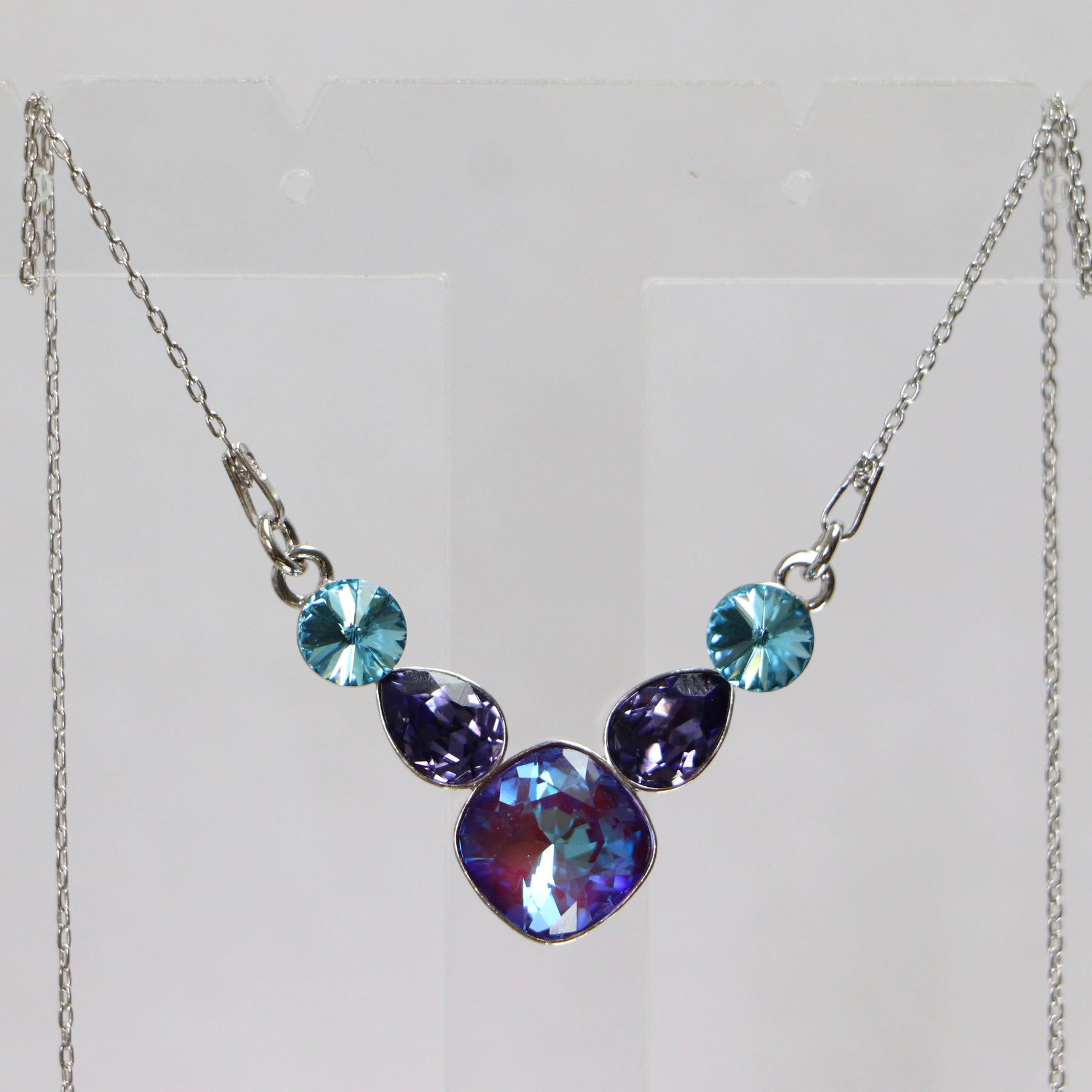 Collier, cristaux Swarovski, argent rhodié, bleu, ART-DECO