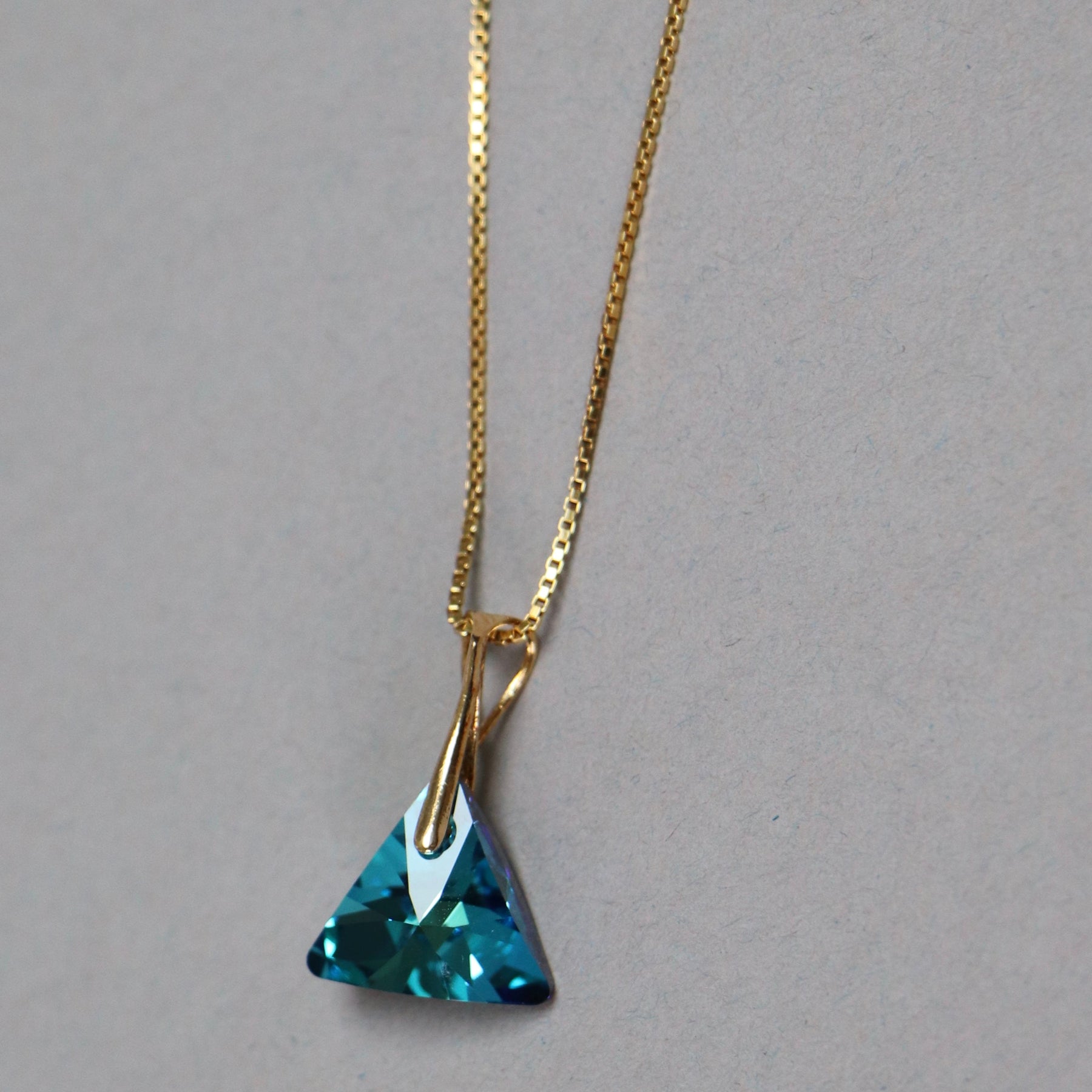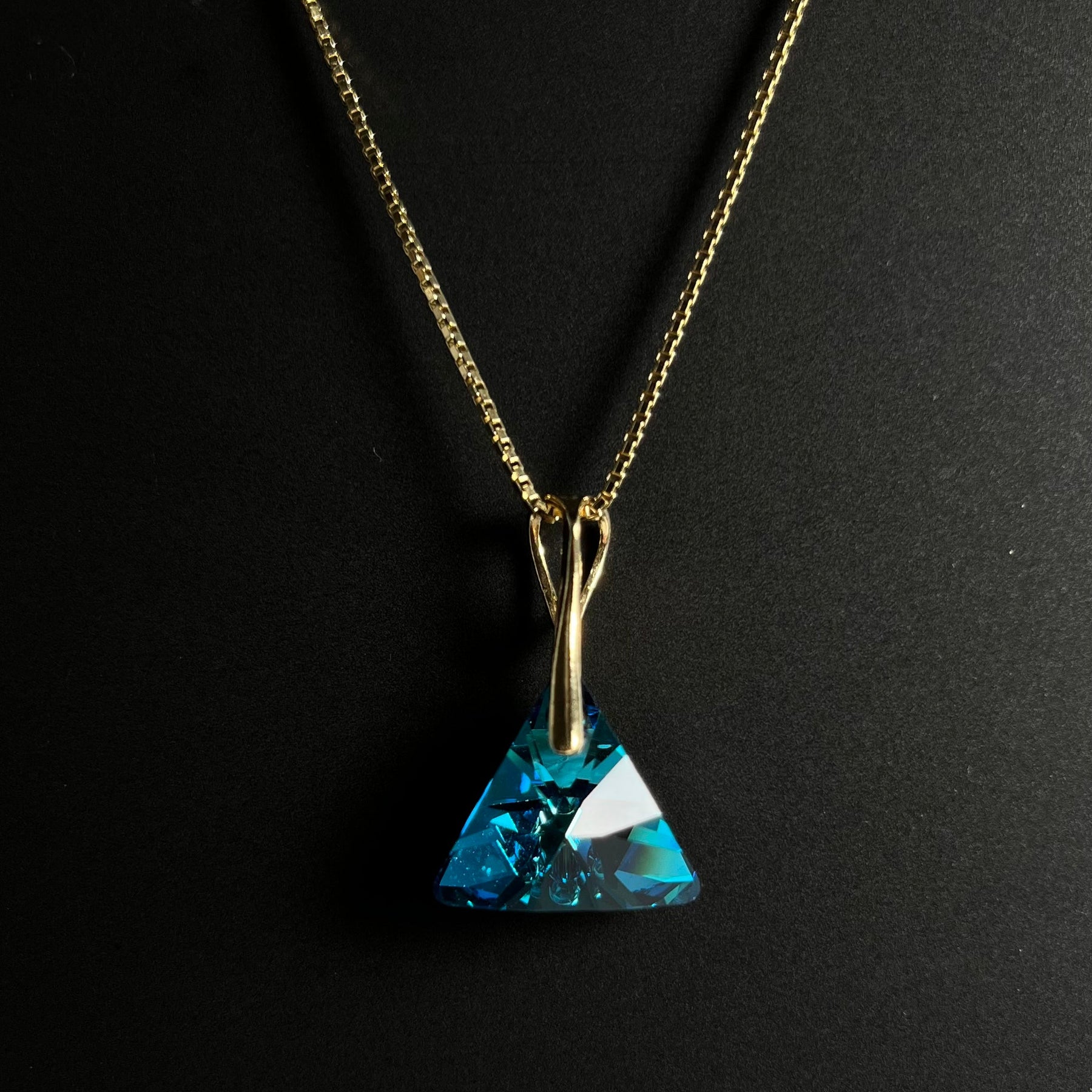 Pendentif avec cristaux Swarovski, argent doré, bleu, BERMUDES