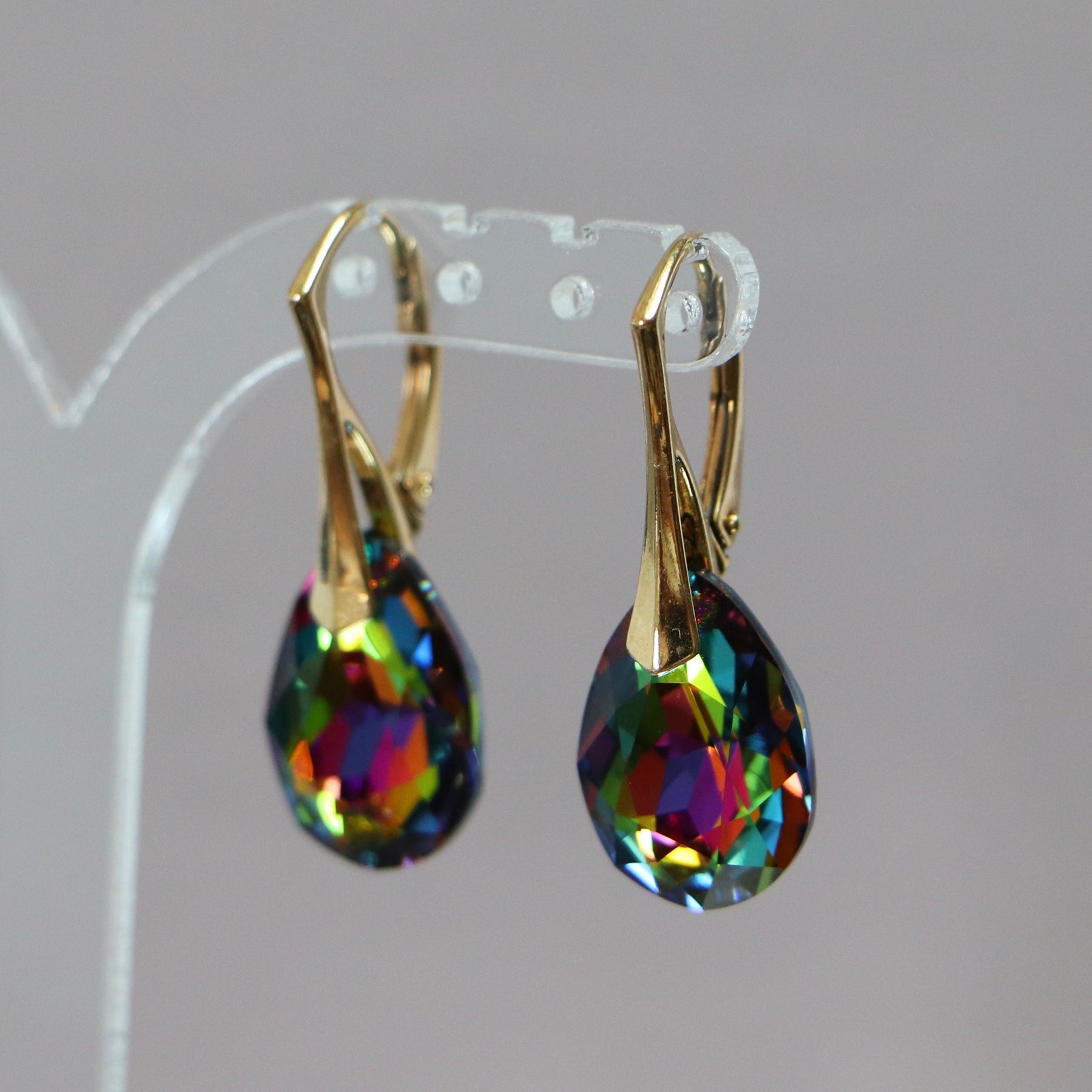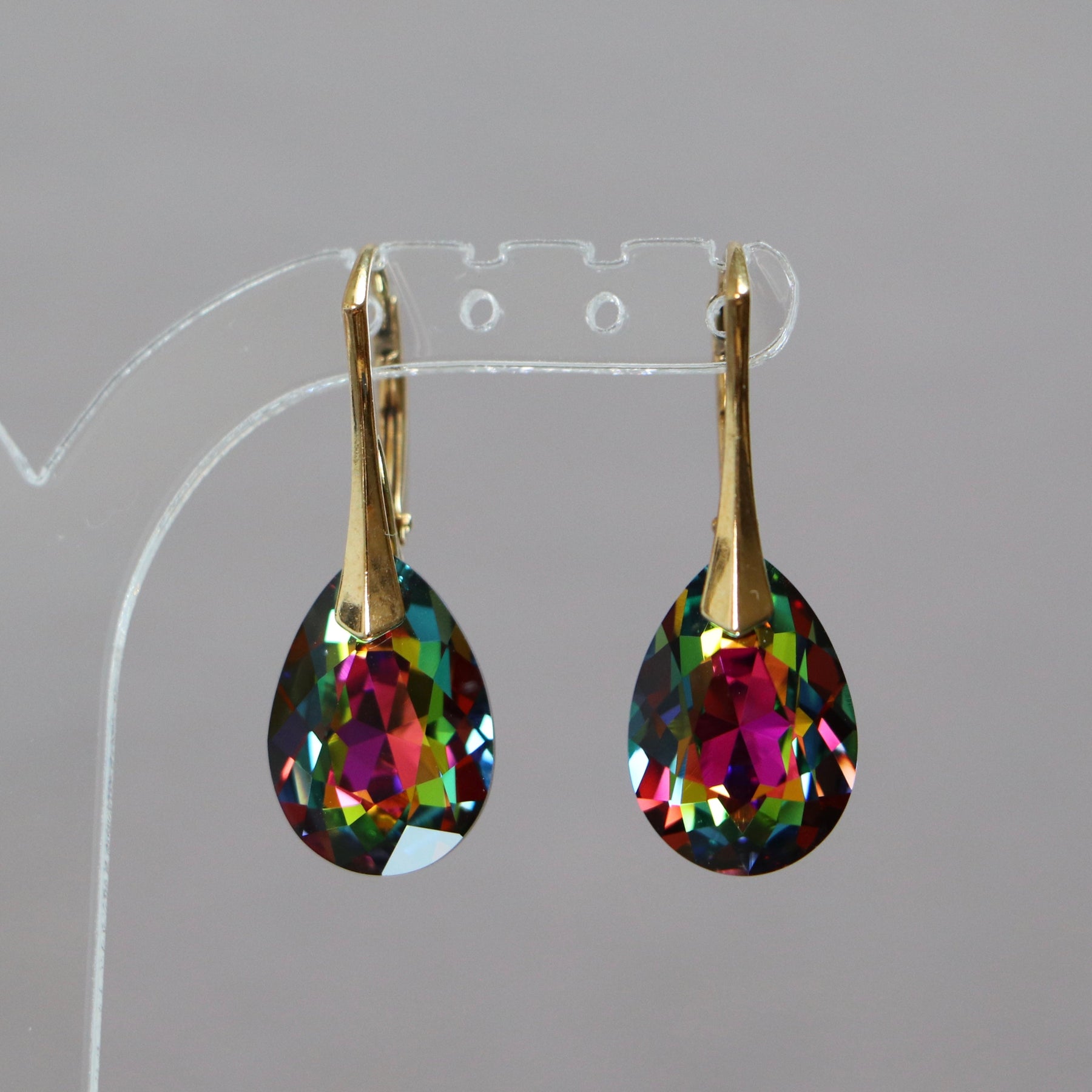 Longueur d'une boucle d’oreille est de 30 mm. Taille de cristal est de 16X10 mm.