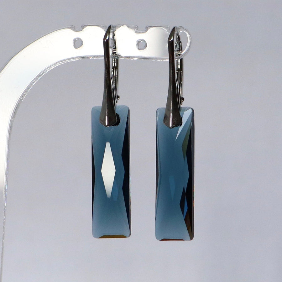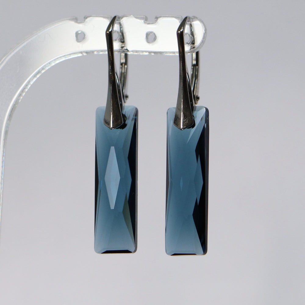 Boucles d'oreilles, cristaux Swarovski, argent doré, bleu montana, NORA