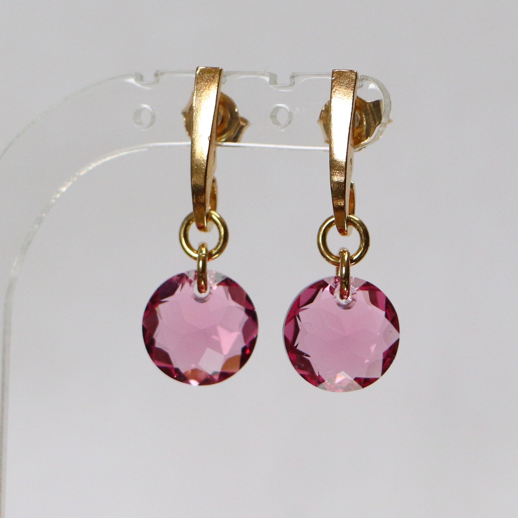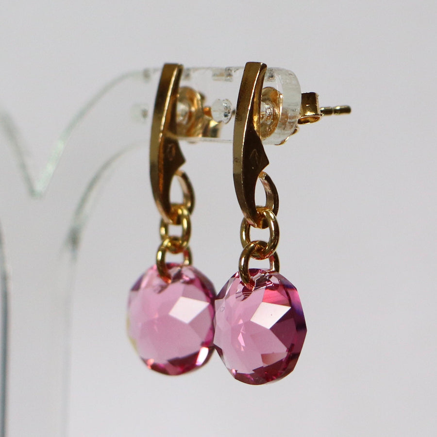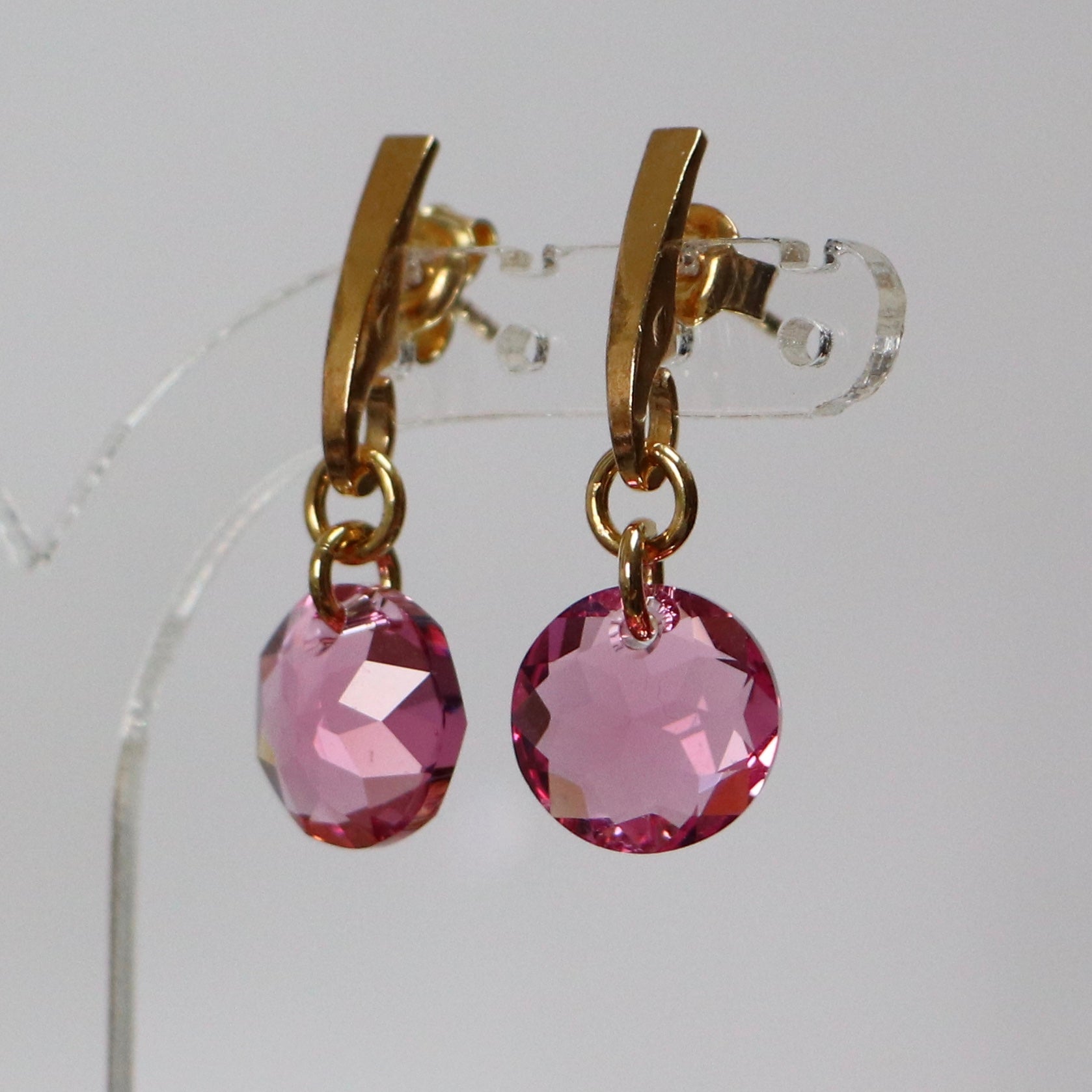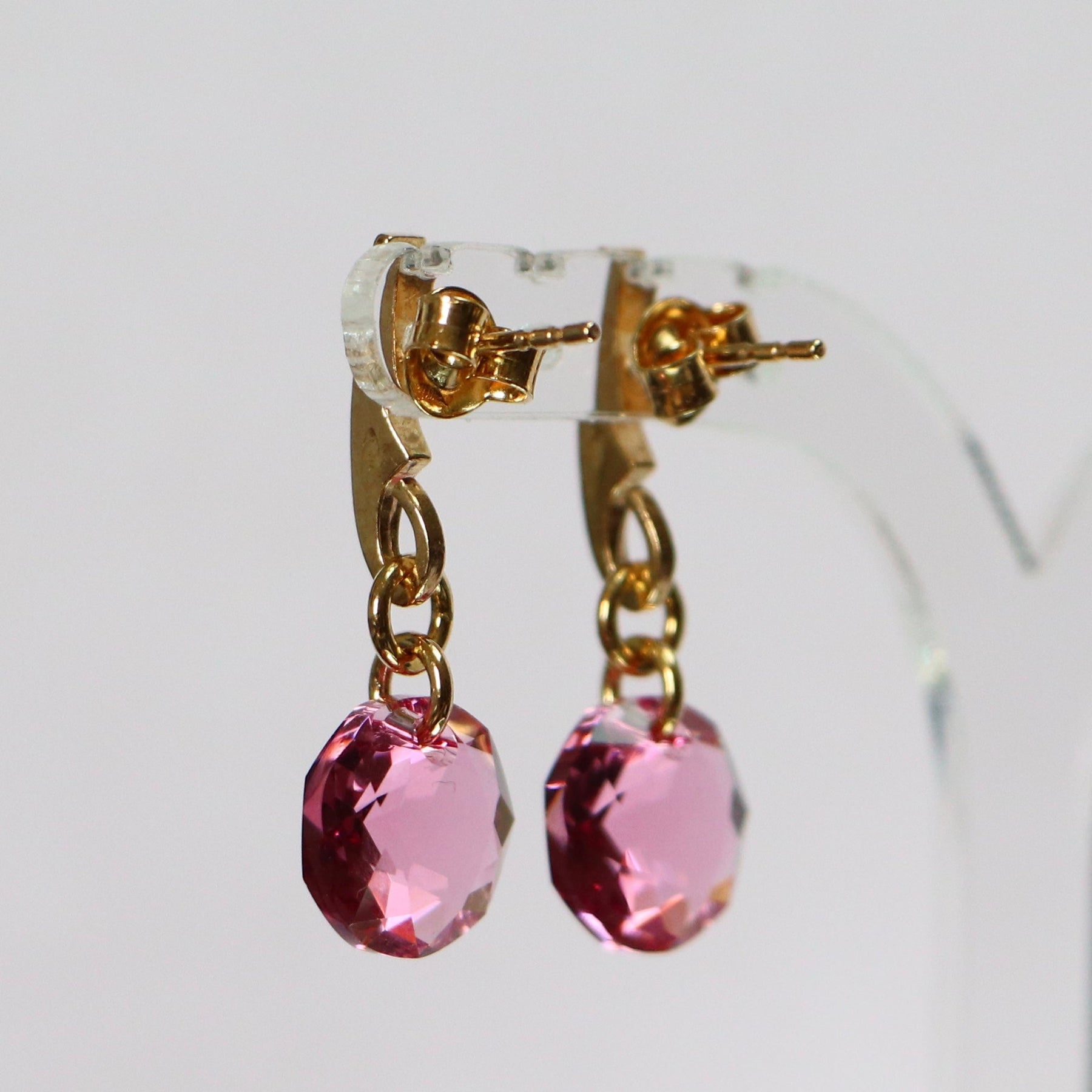 Boucles d'oreilles, cristaux Swarovski, argent doré, rose, BONBON