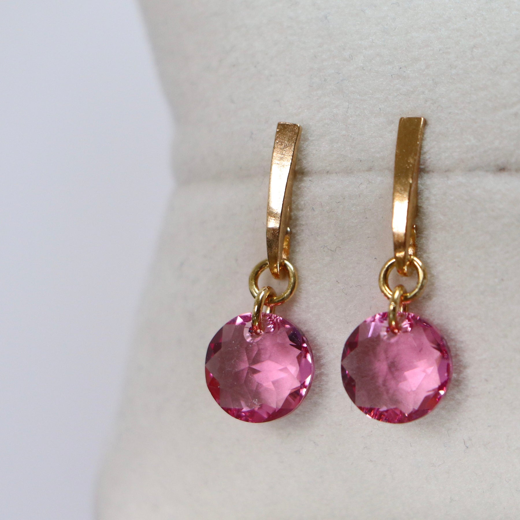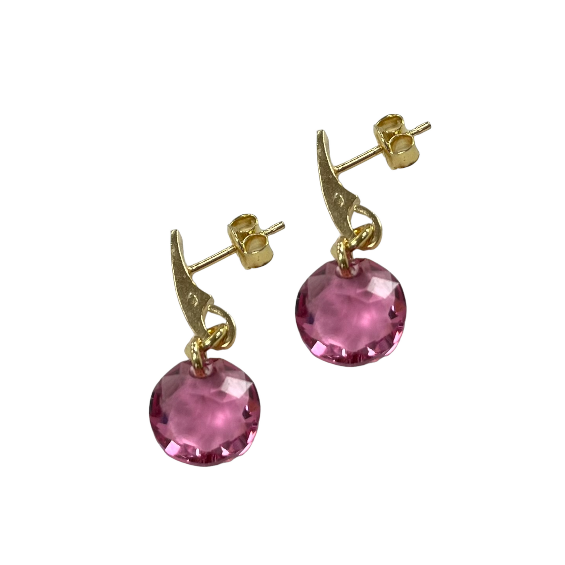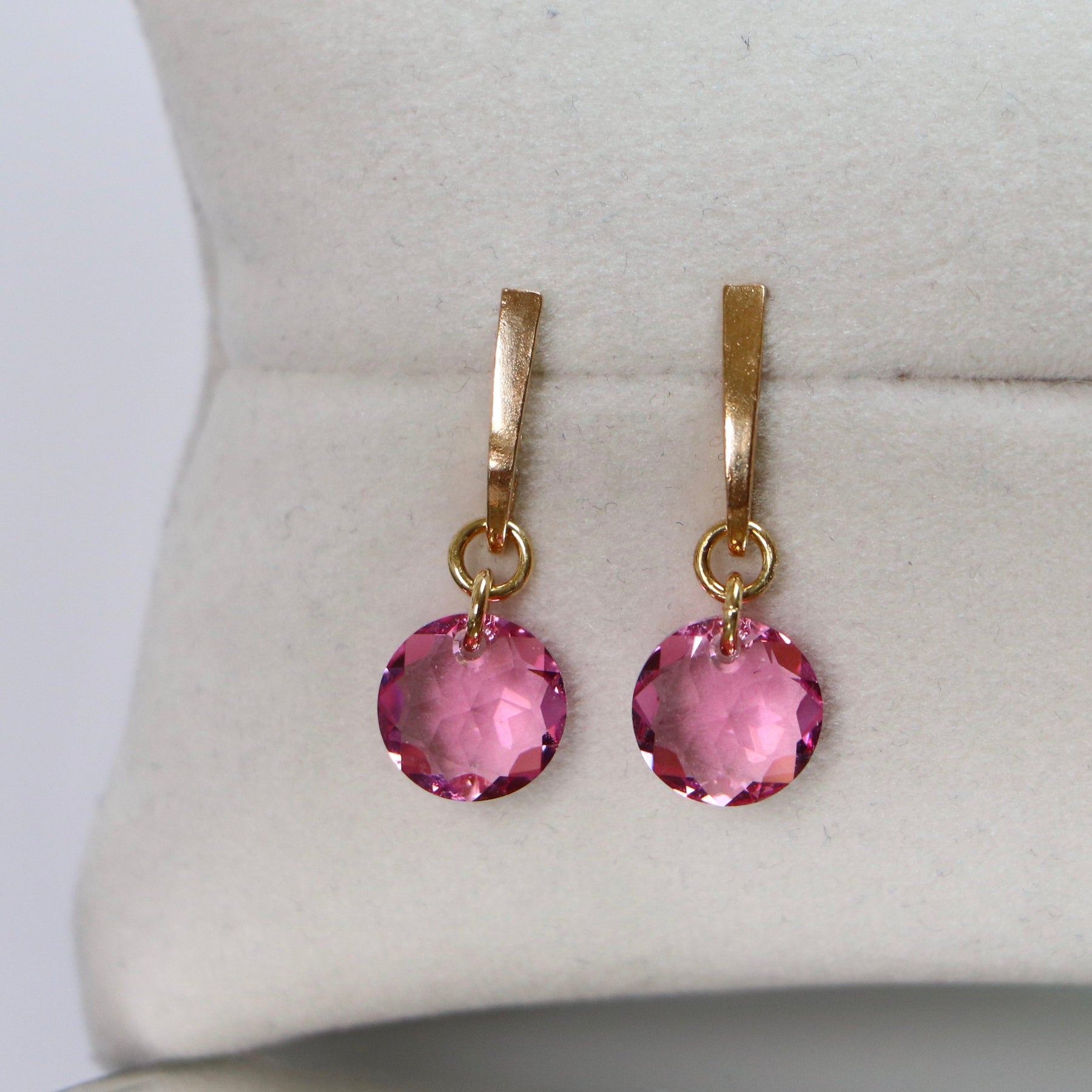 Boucles d'oreilles, cristaux Swarovski, argent doré, rose, BONBON