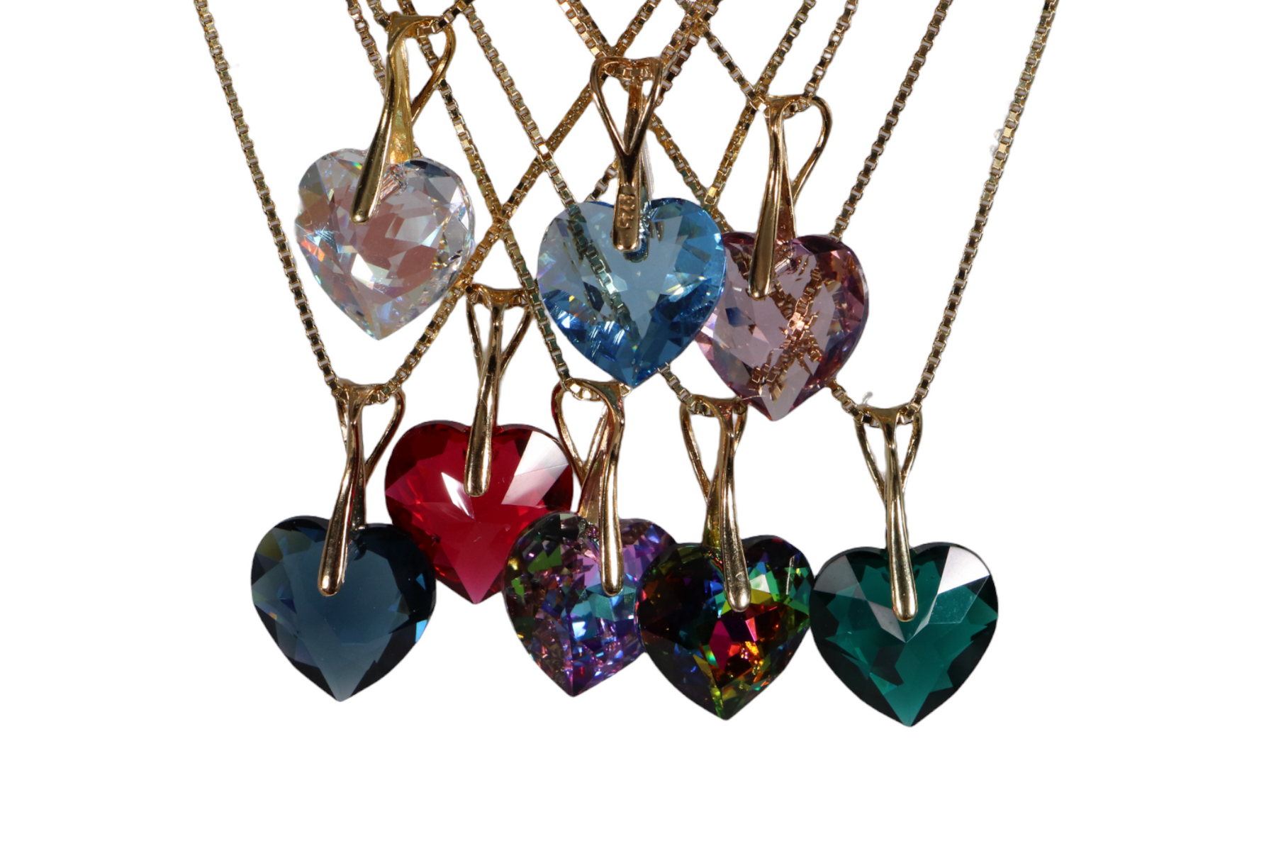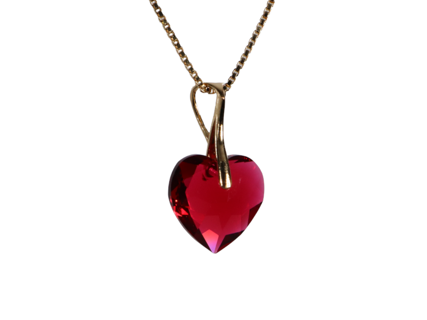 Collier avec cristaux Swarovski, rouge framboise, argent, HEART