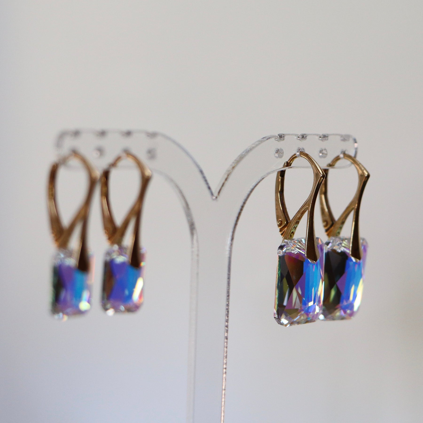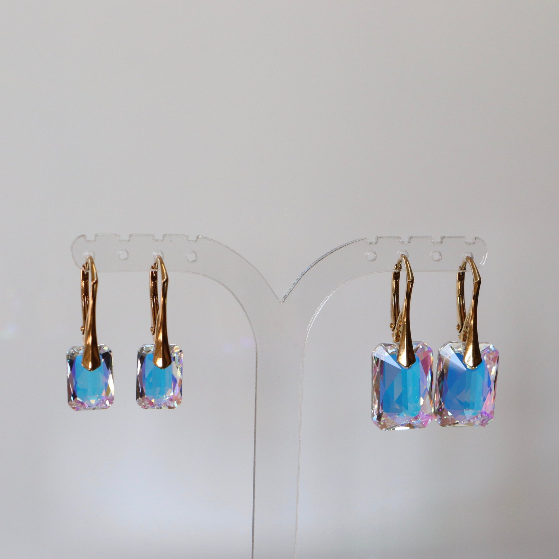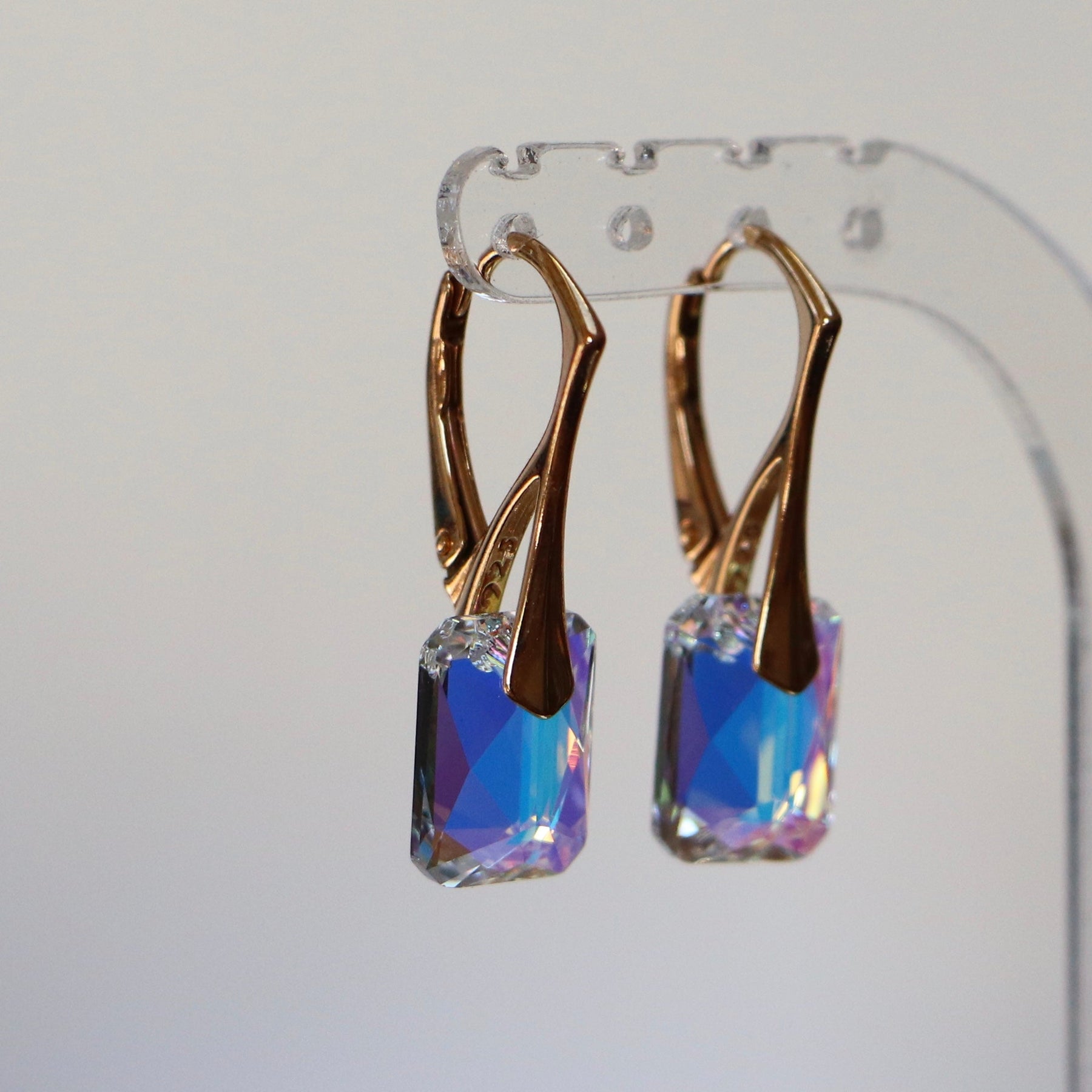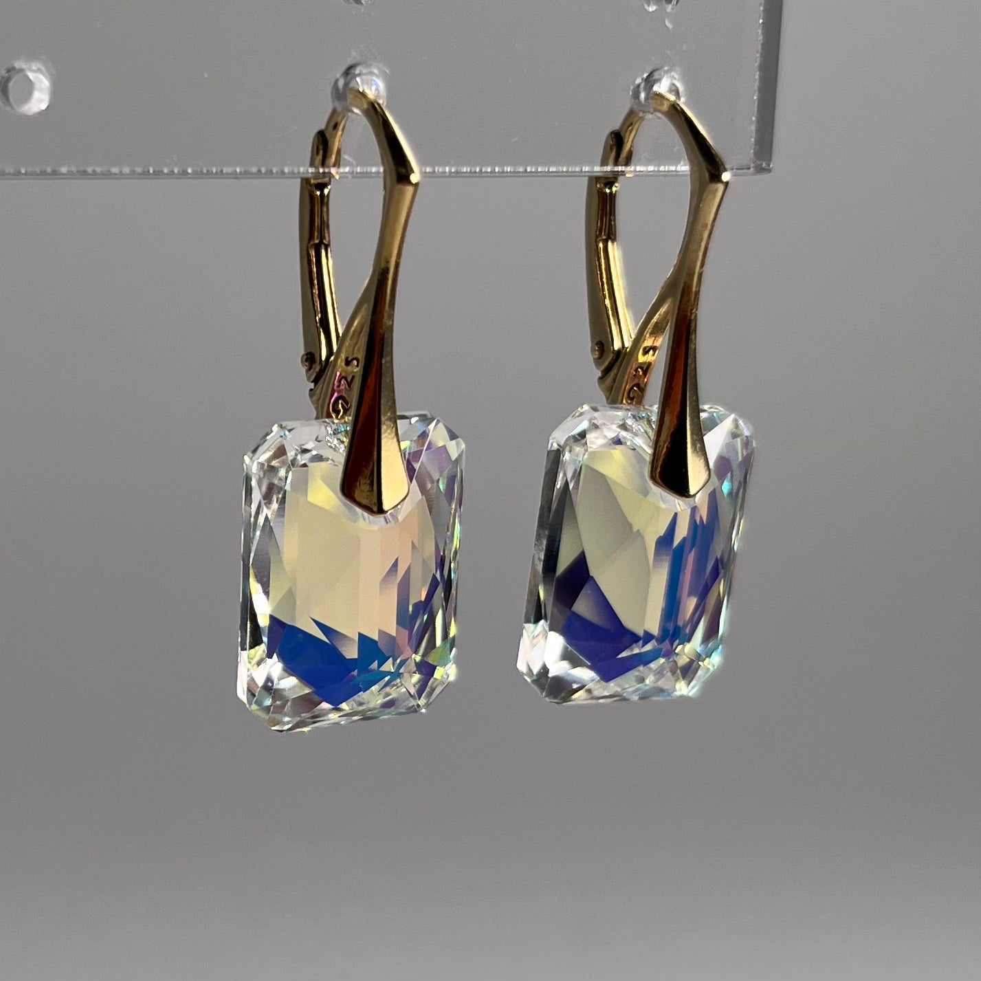 Boucles d'oreilles avec cristaux Swarovski, cristal AB, argent doré, NOEMIE