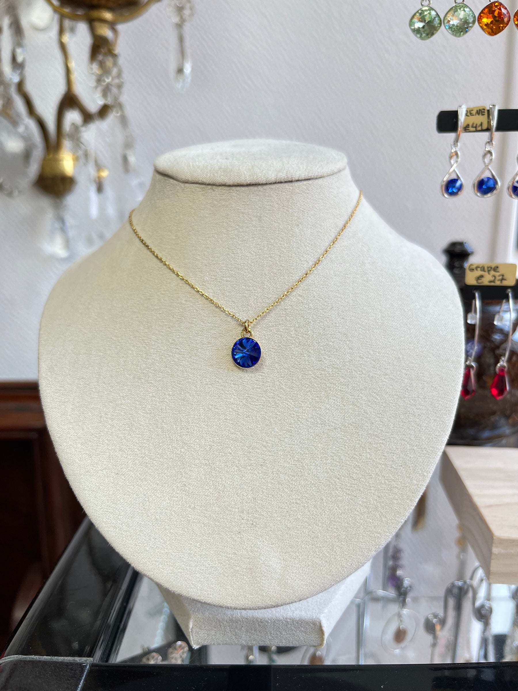 Pendentif avec une chaine, cristal Swarovski, argent doré, bleu, EMI