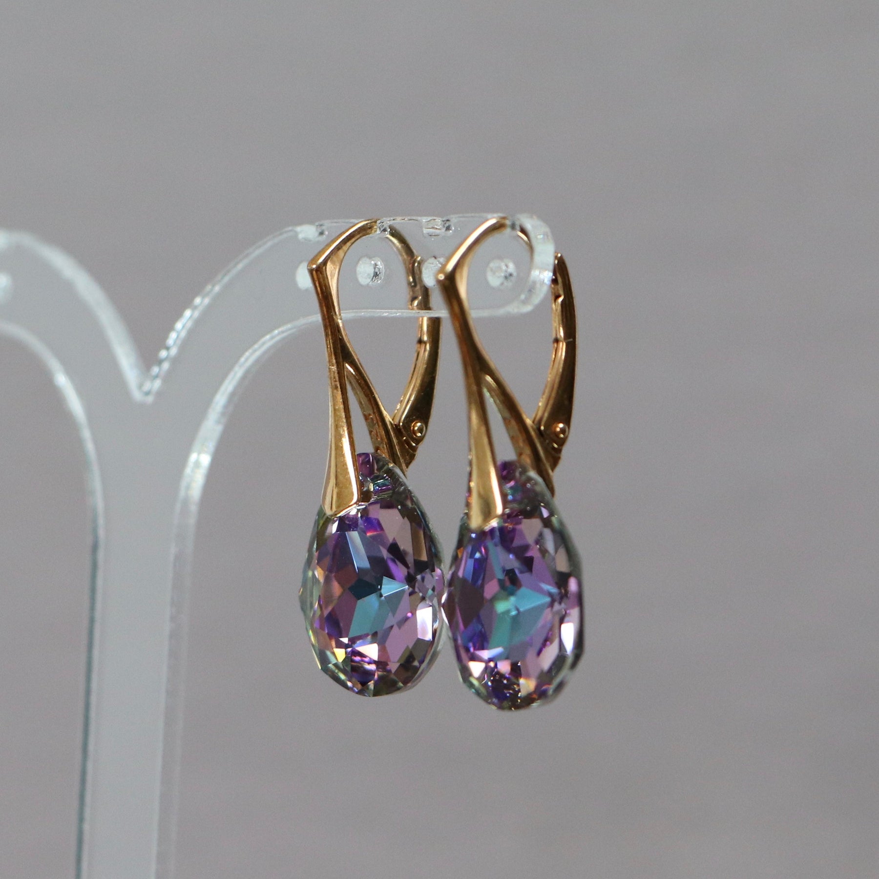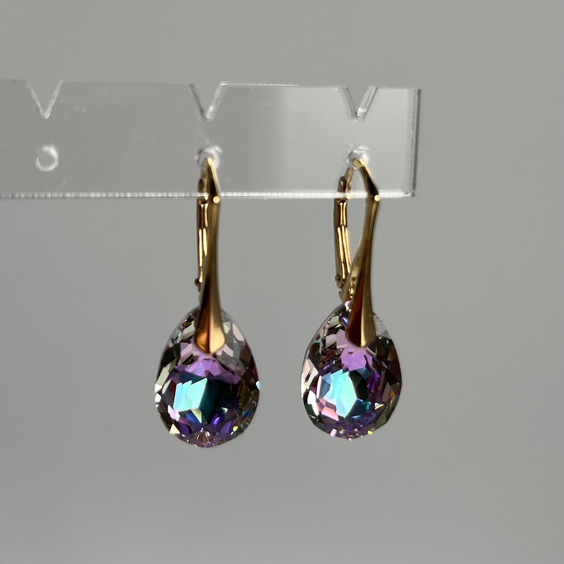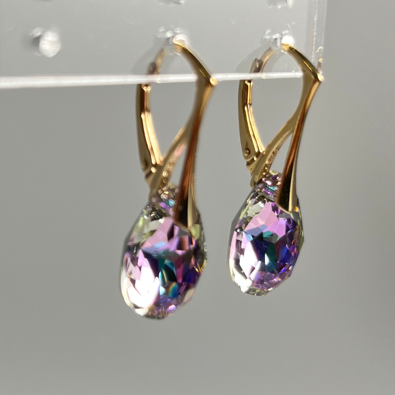Longueur d'une boucle d’oreille est de 30 mm. Taille de cristal est de 16X10 mm.