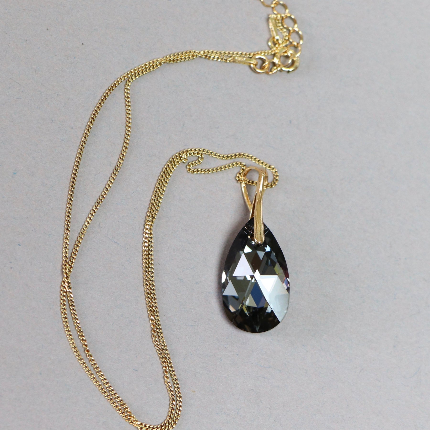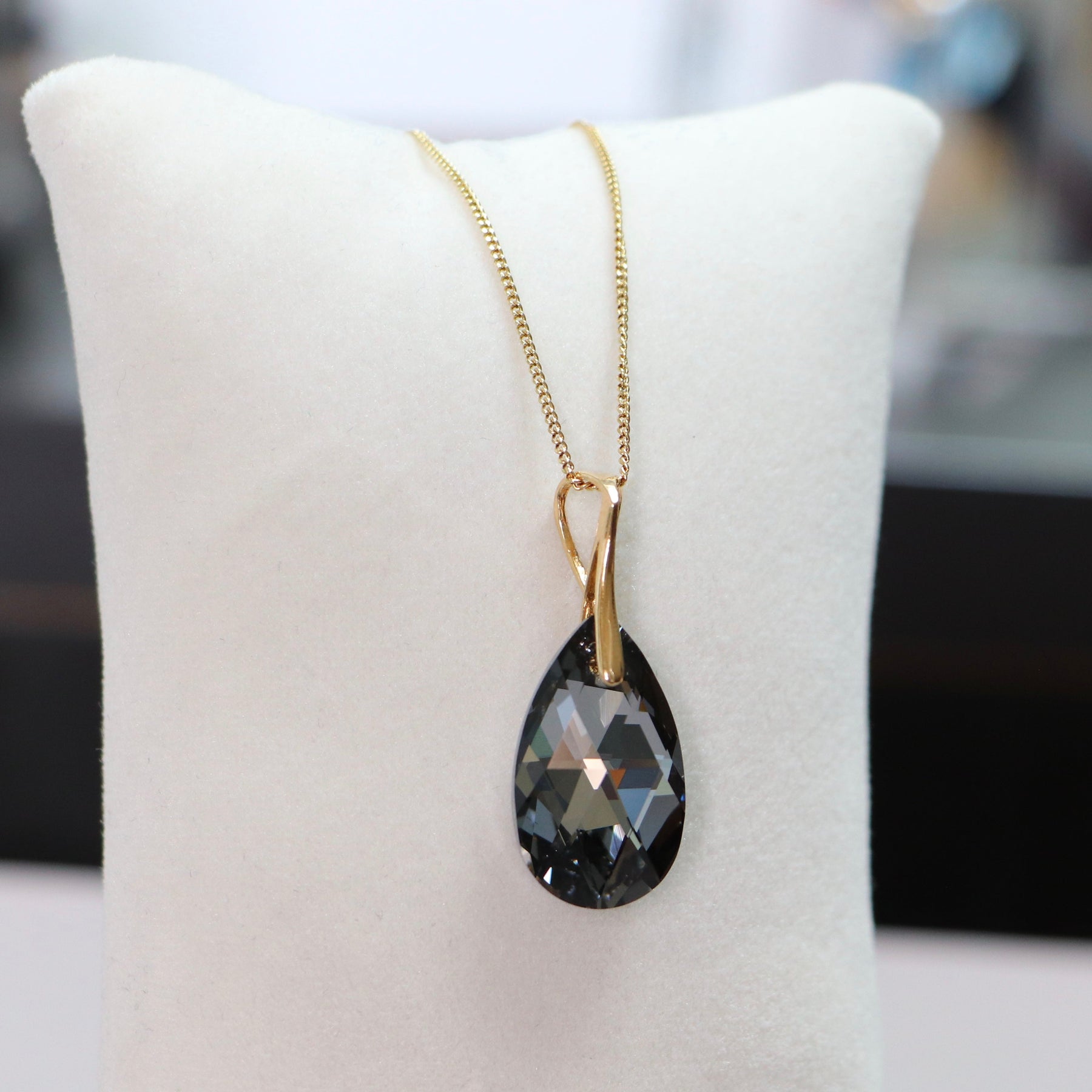 Pendentif (grande goutte) avec ou sans chaine, cristaux Swarovski, argent doré, collection LARME, gris argenté