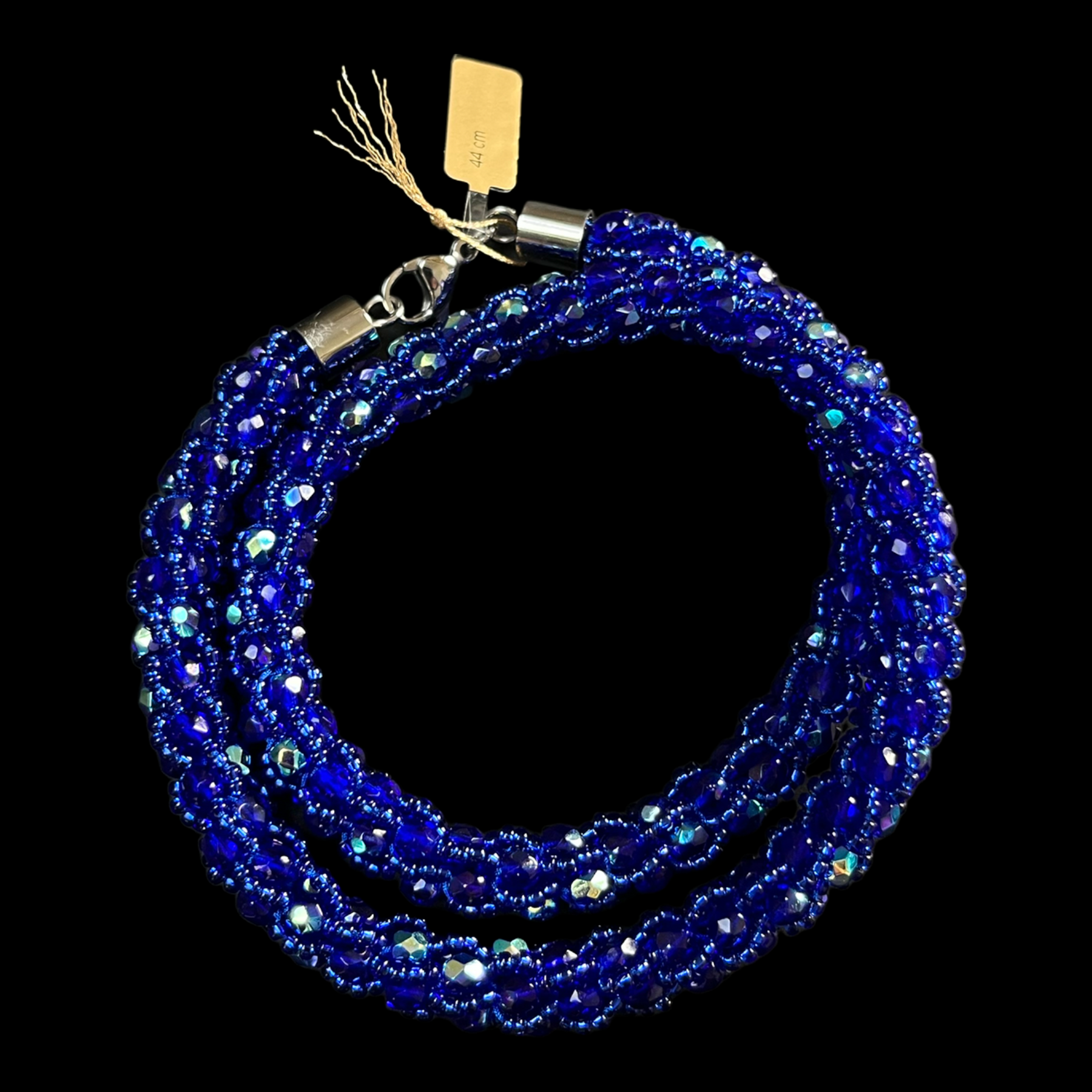 Spiralgehäkelte Halskette aus Miyuki-Perlen, Kobaltblau, 44 cm