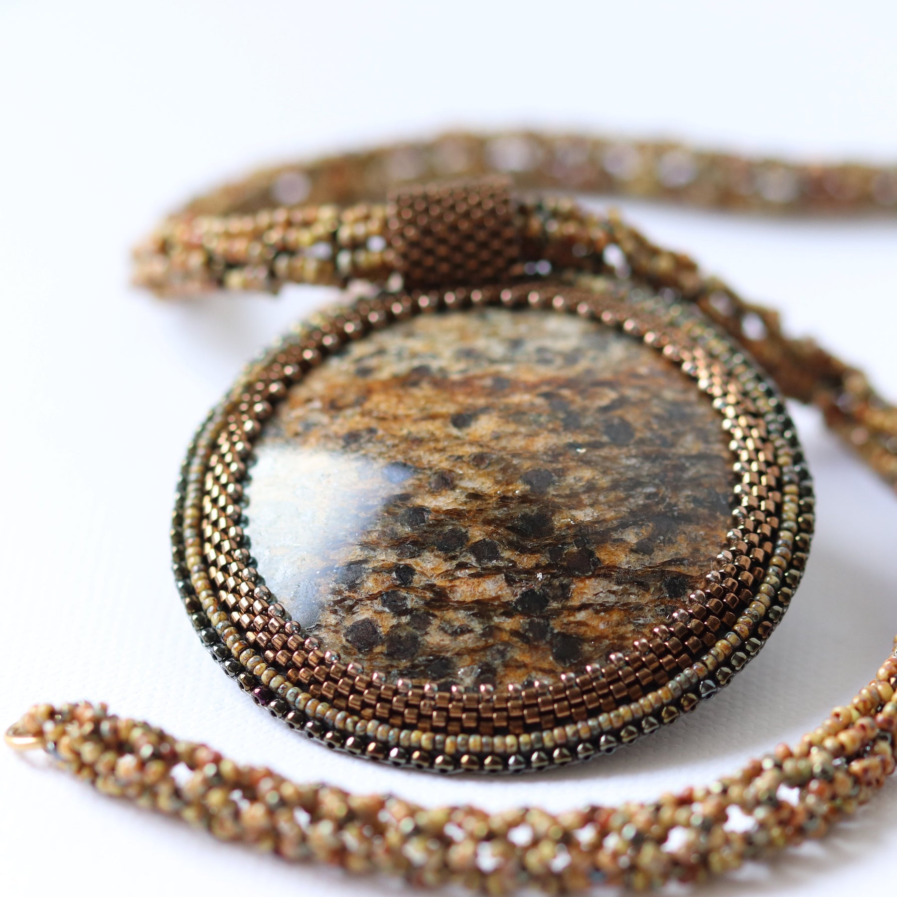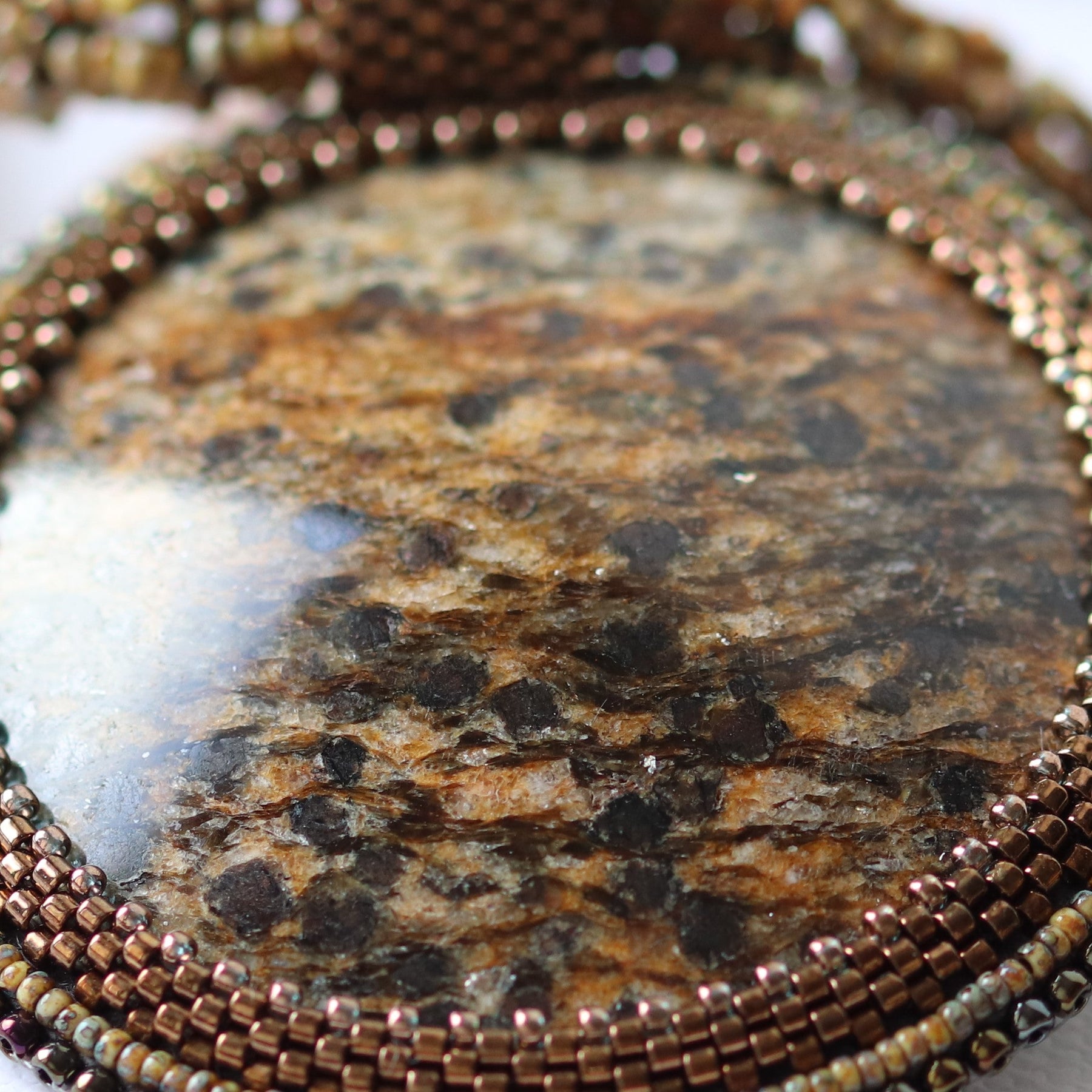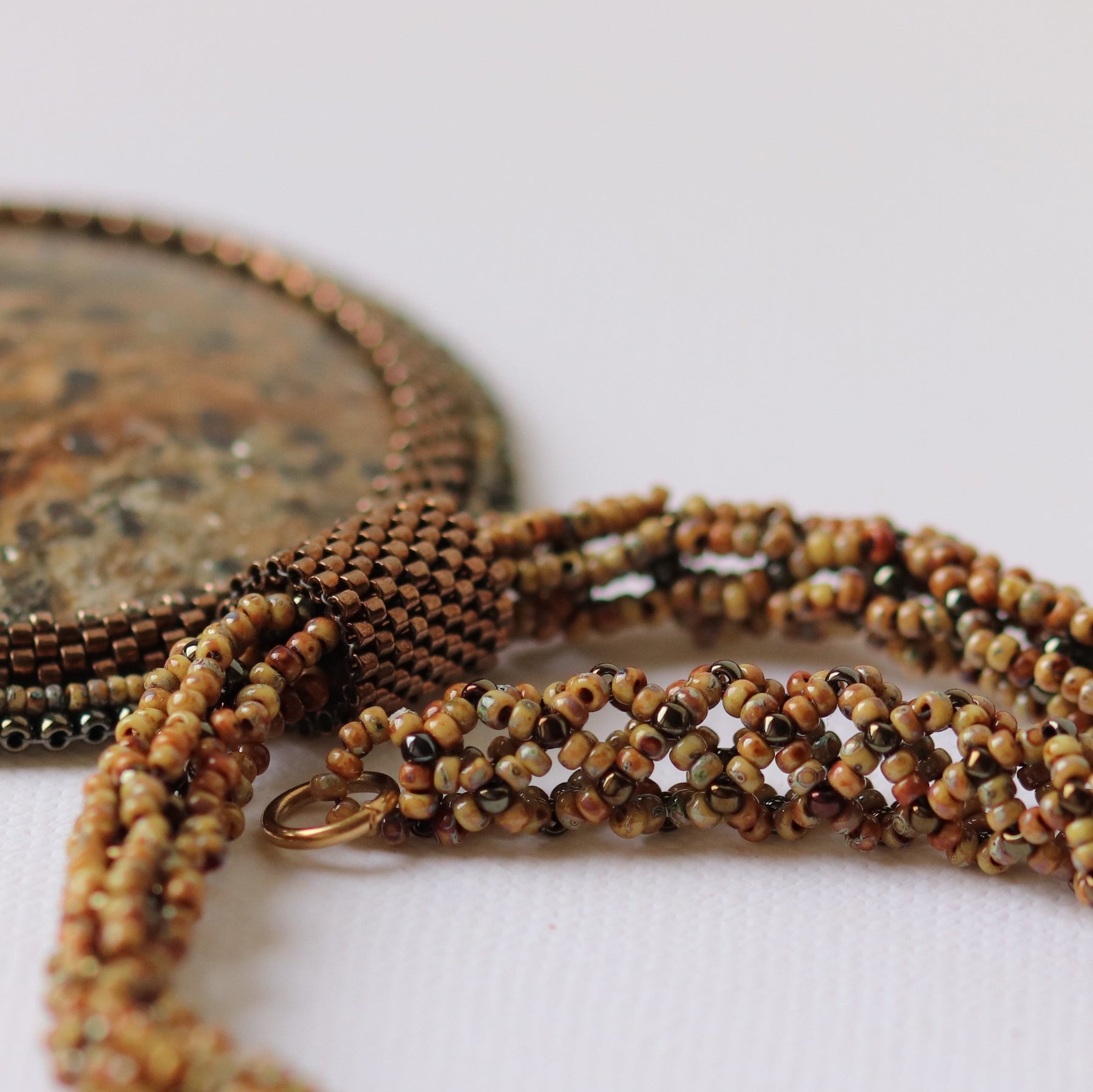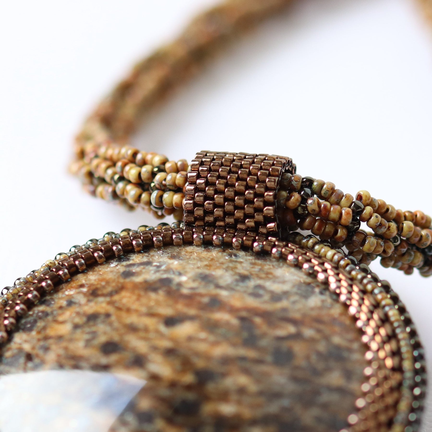 Bestickte Blumenkette – Vulkanrhyolith, Miyuki-Perlen