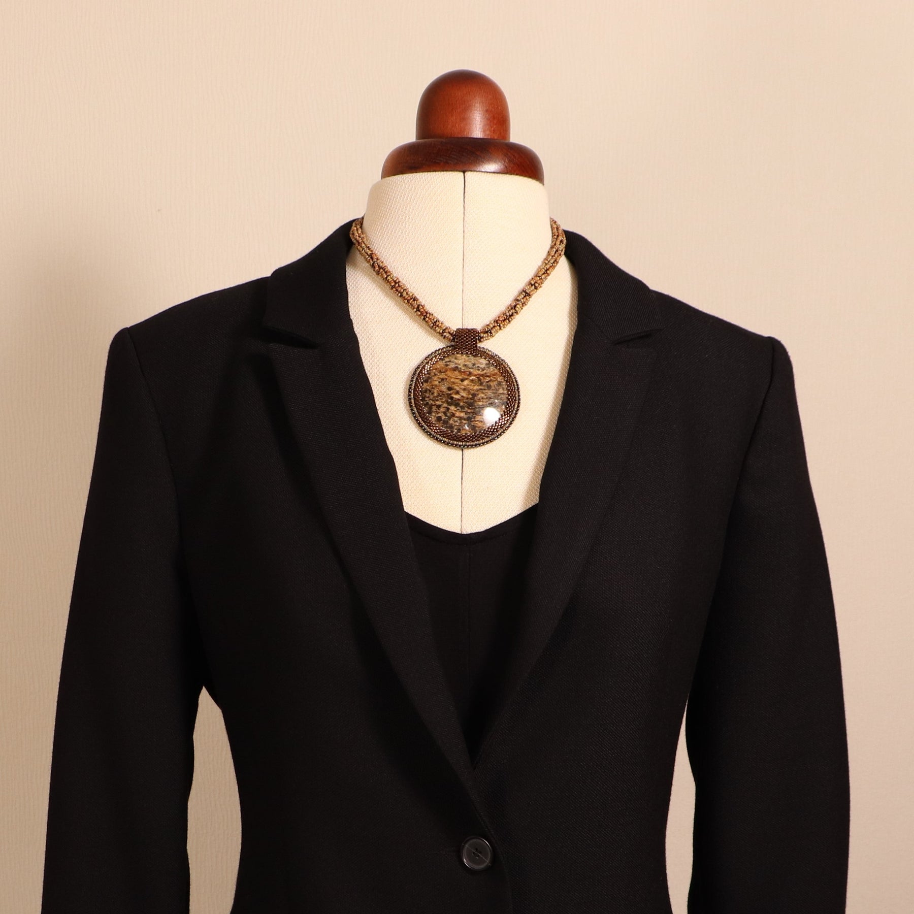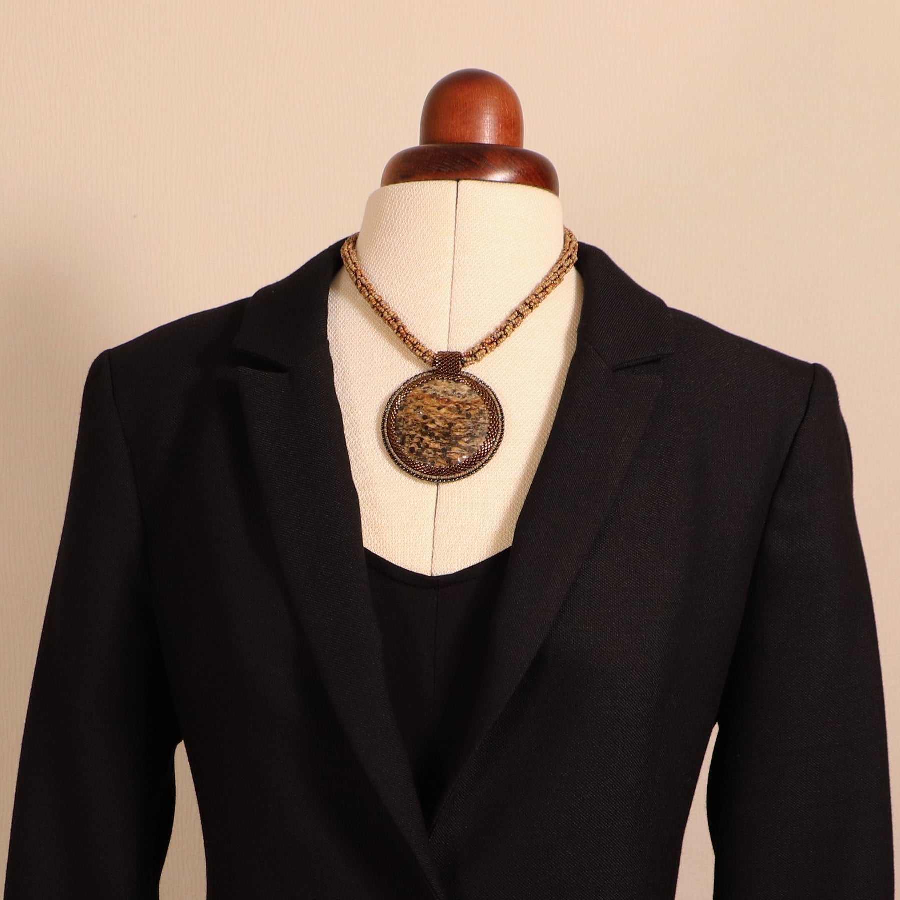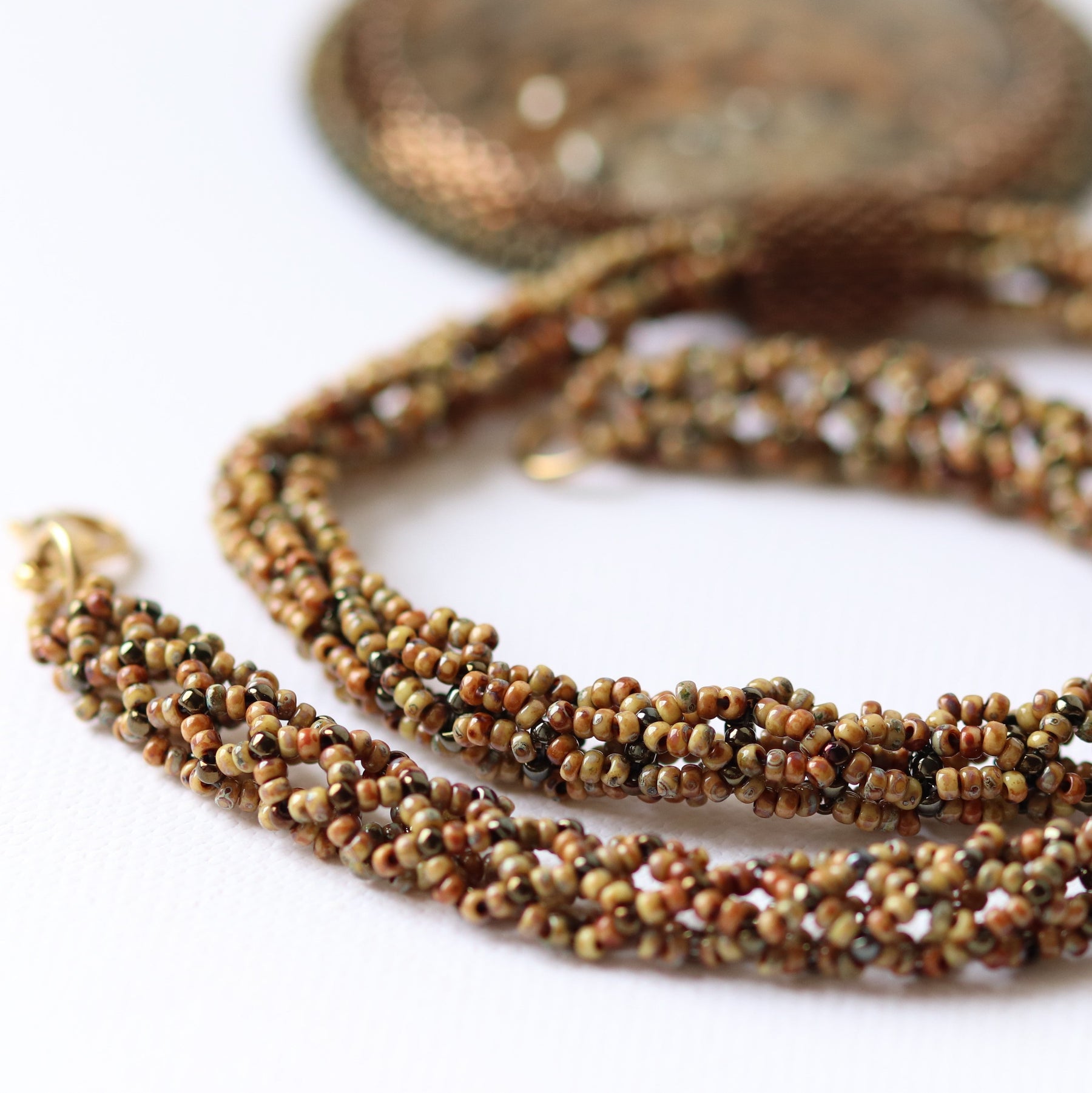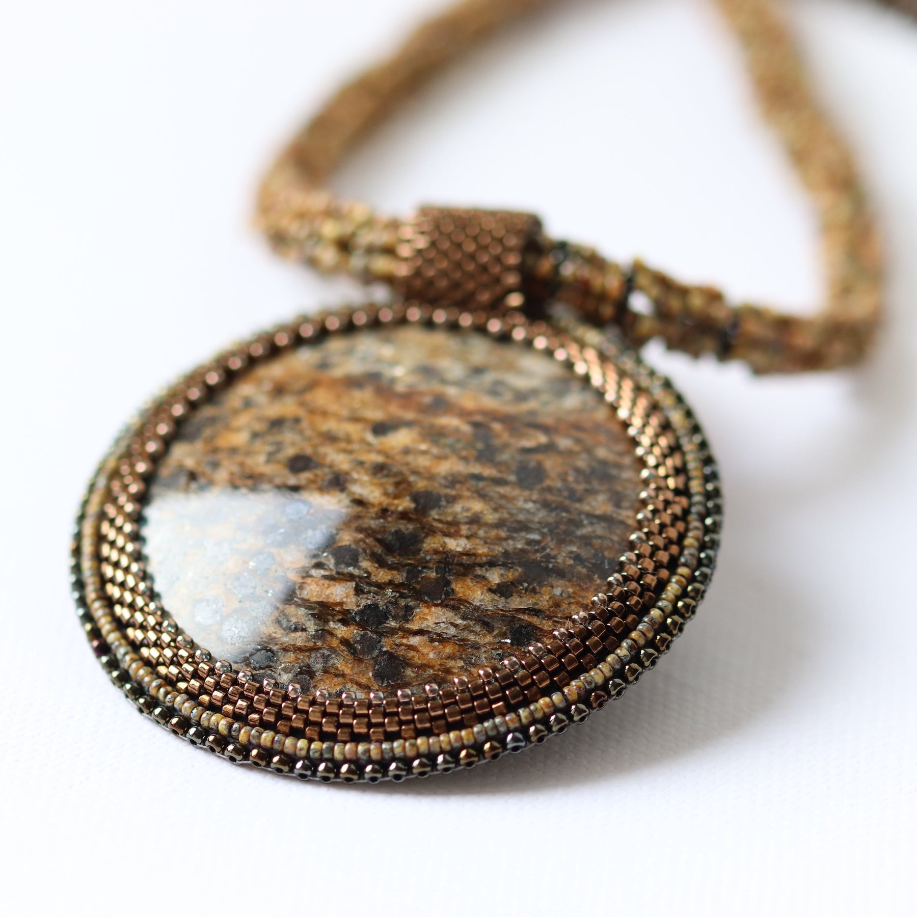 Bestickte Blumenkette – Vulkanrhyolith, Miyuki-Perlen