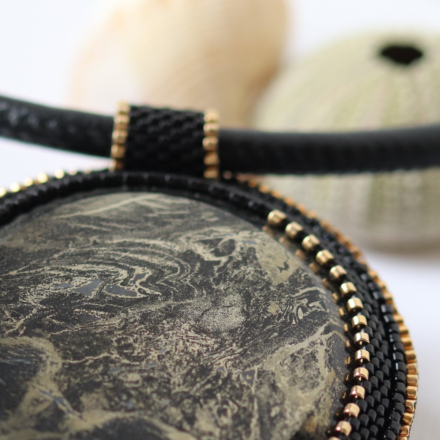Bestickte Halskette mit Glimmerschiefer (Glimmer und Granat)