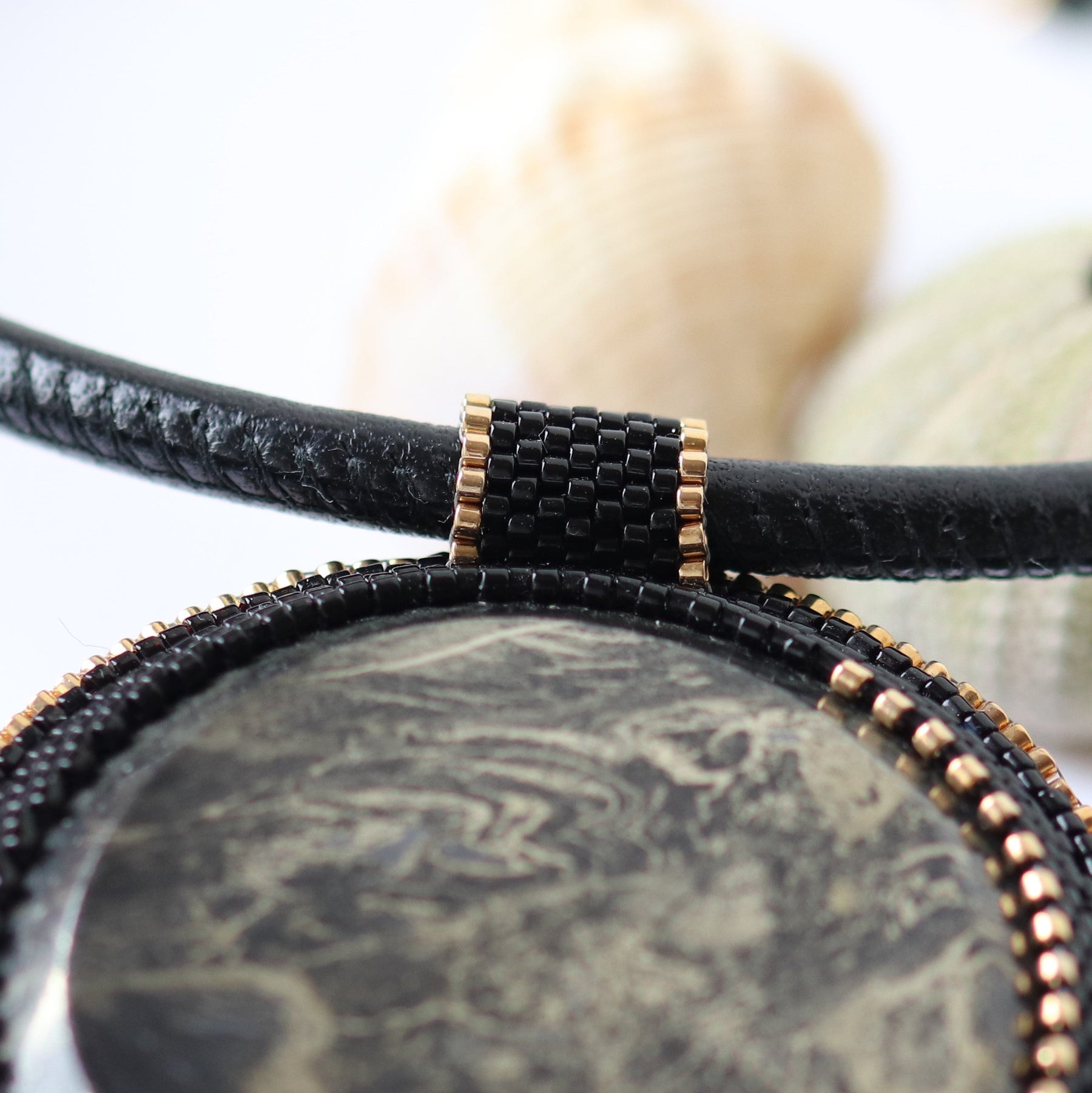 Bestickte Blumenkette – Vulkanrhyolith, Miyuki-Perlen