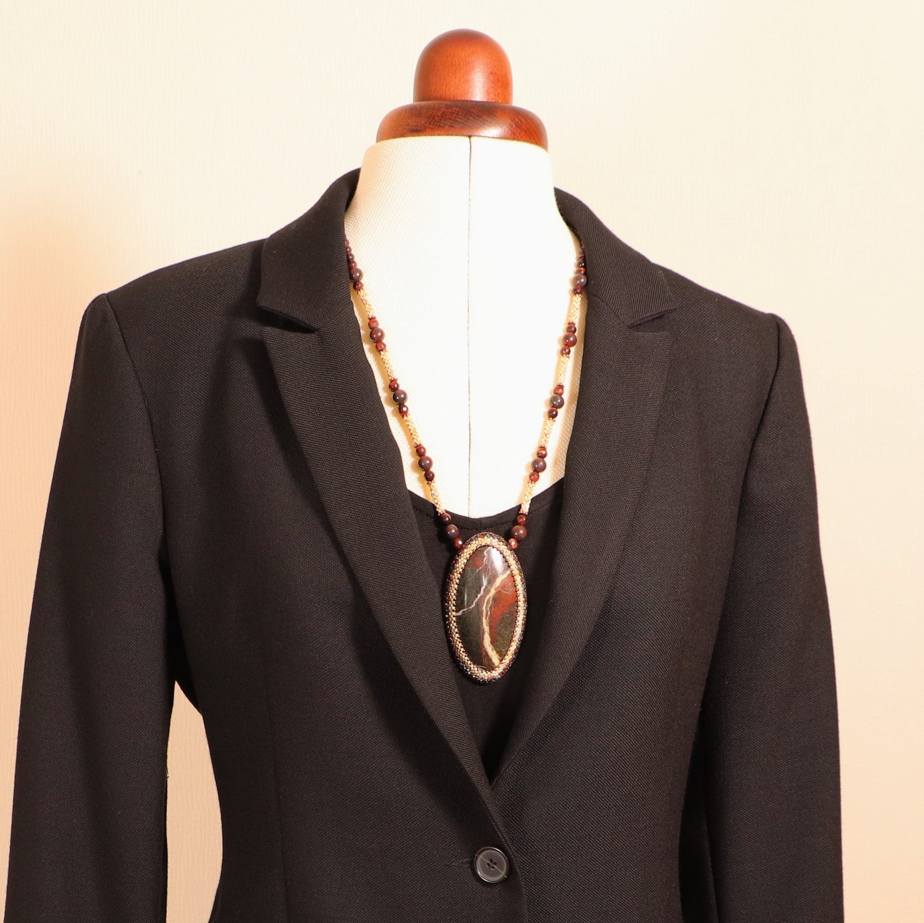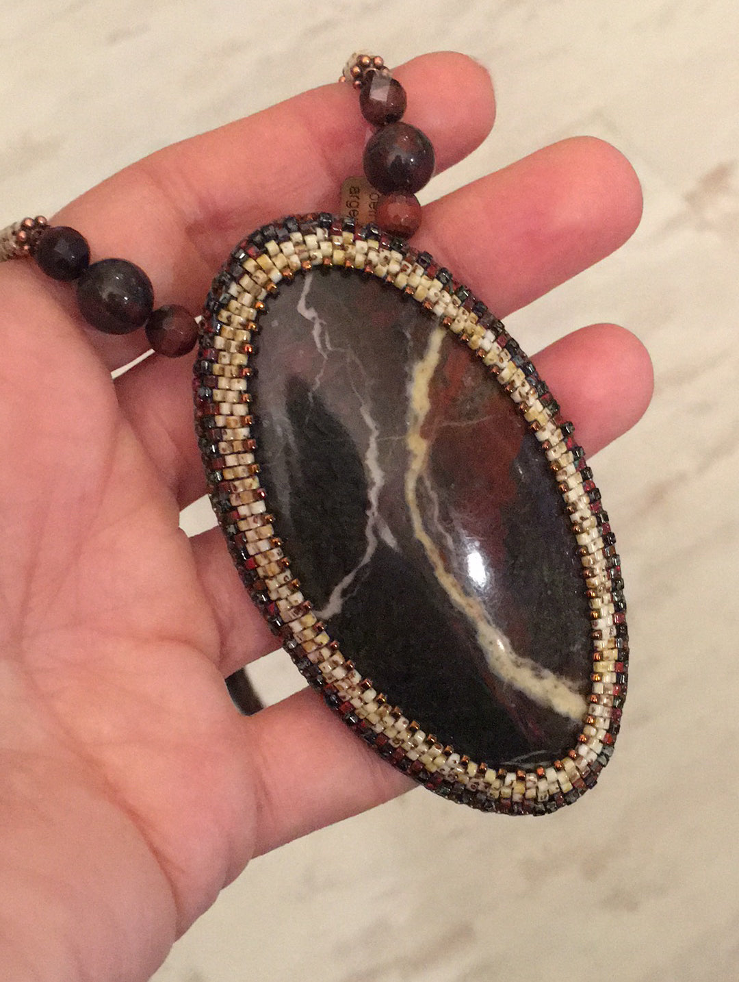 Bestickte Blumenkette – Vulkanrhyolith, Miyuki-Perlen