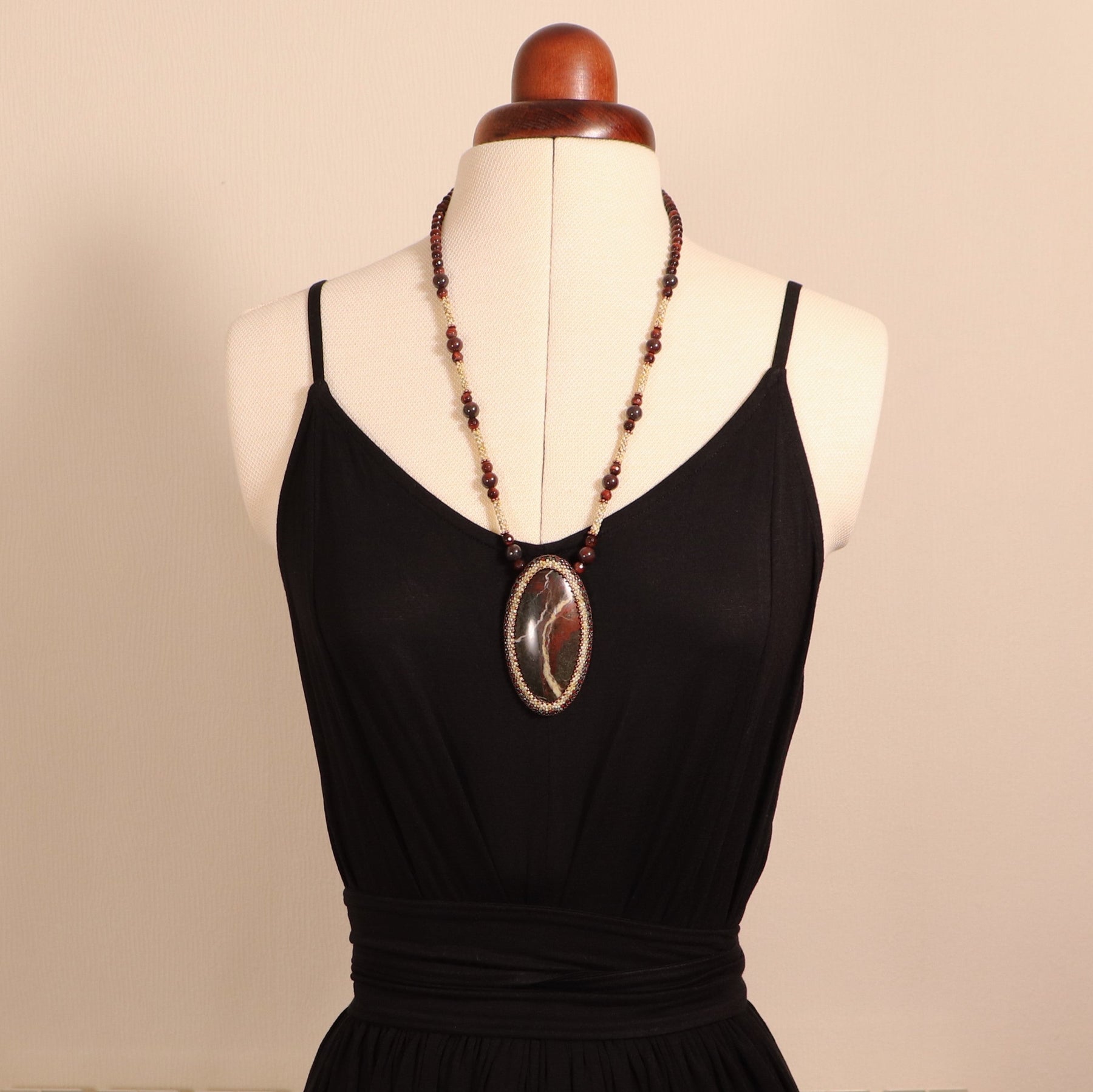 Bestickte Halskette mit Glimmerschiefer (Glimmer und Granat)