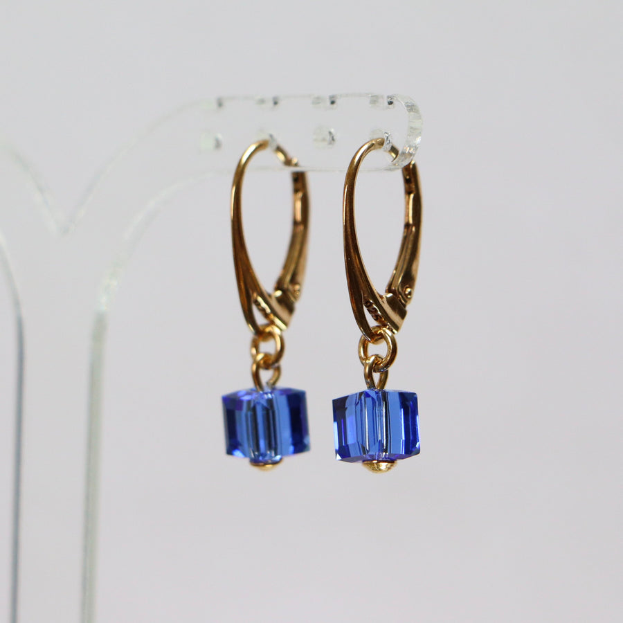 Ohrringe mit Swarovski Kristallen, blau, Silber vergoldet, CARRE