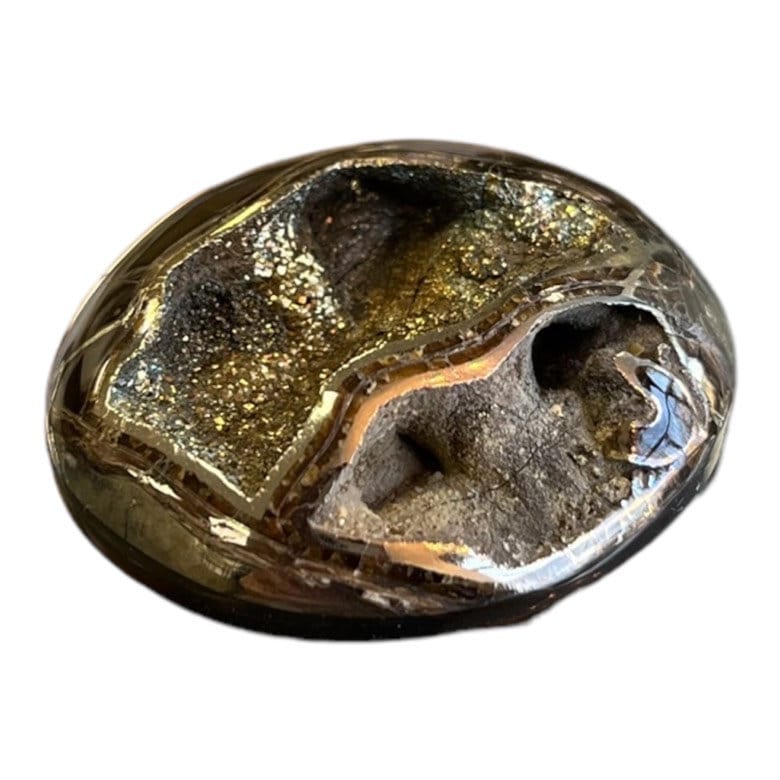Cabochon in pyritisiertem Ammoniten, Geode, Pseudomorphose, Fossil.