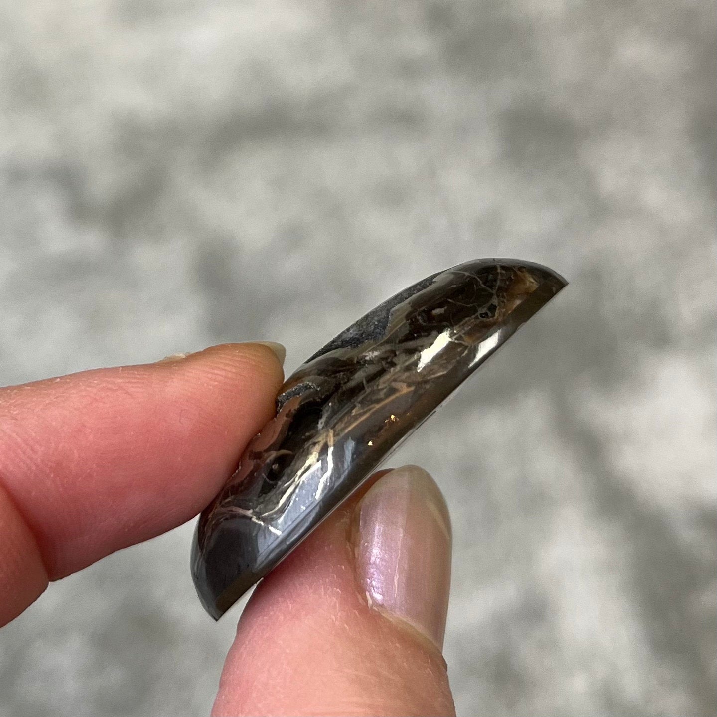 Der Cabochon ist mit Stein ausgekleidet (siehe Fotos) und stabilisiert.