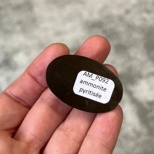 Pyritisierter Ammonit, Cabochon-Schliff, Geode, Pseudomorphose, Fossil, Unikat für einen Designer