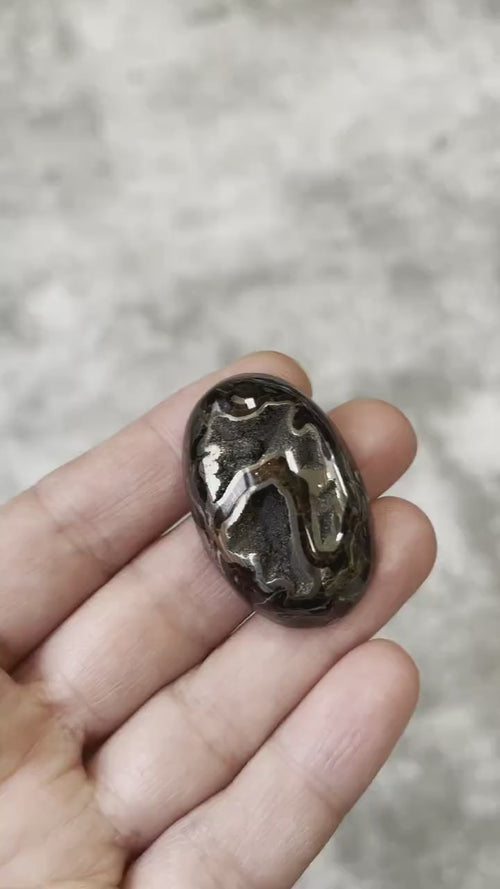 Cabochon in pyritisiertem Ammoniten, Geode, Pseudomorphose, Fossil.