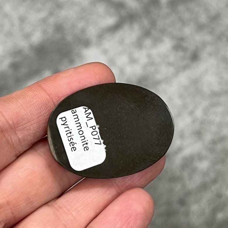 Ammonite pyritisée, AM_P021, taille cabochon, 61x41x10 mm; 37g;
