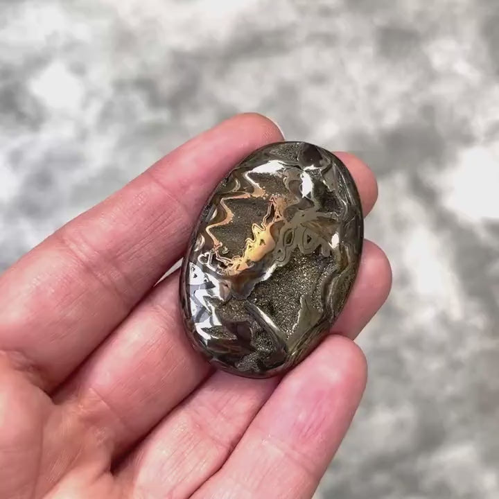 Pyritisierter Ammonit, Cabochon-Schliff, Geode, Pseudomorphose, Fossil, Unikat für einen Designer