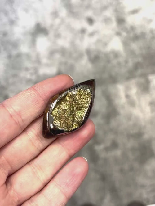Pyritisierter Ammonit, Cabochon-Schliff, Geode, Pseudomorphose, Fossil, Unikat für einen Designer