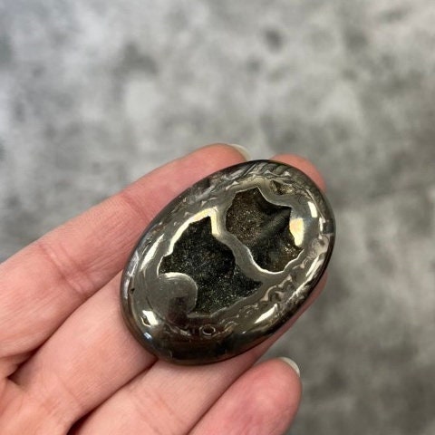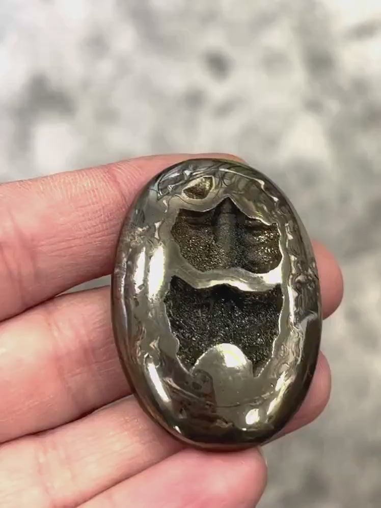 Pyritisierter Ammonit, Cabochon-Schliff, Geode, Pseudomorphose, Fossil, Unikat für einen Designer