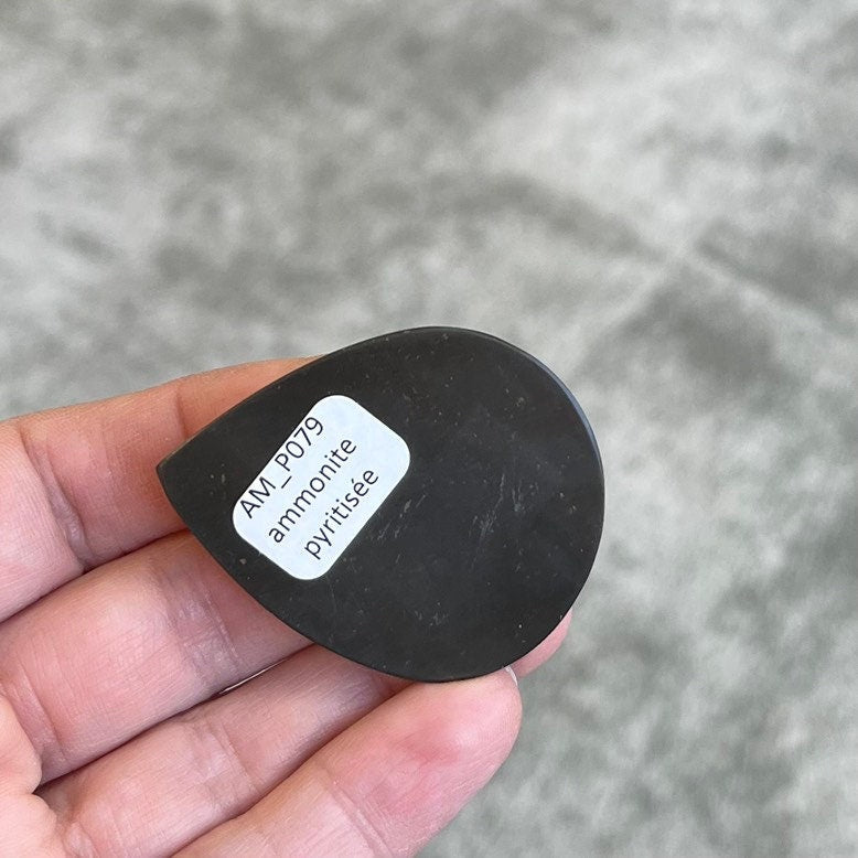 Ammonite pyritisée, AM_P021, taille cabochon, 61x41x10 mm; 37g;