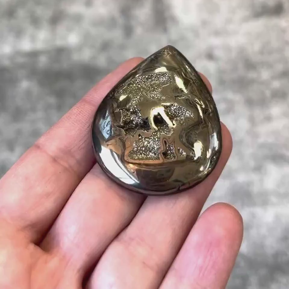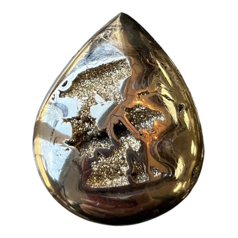 Pyritisierter Ammonit, Cabochon-Schliff, Geode, Pseudomorphose, Fossil, Unikat für einen Designer