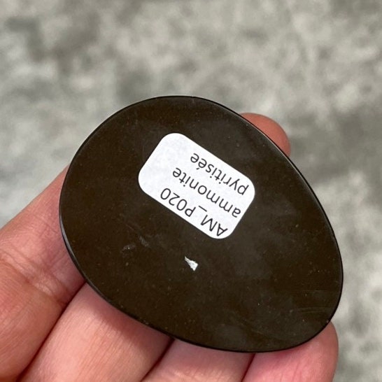 Pyritisierter Ammonit, Cabochon-Schliff, Geode, Pseudomorphose, Fossil, Unikat für einen Designer