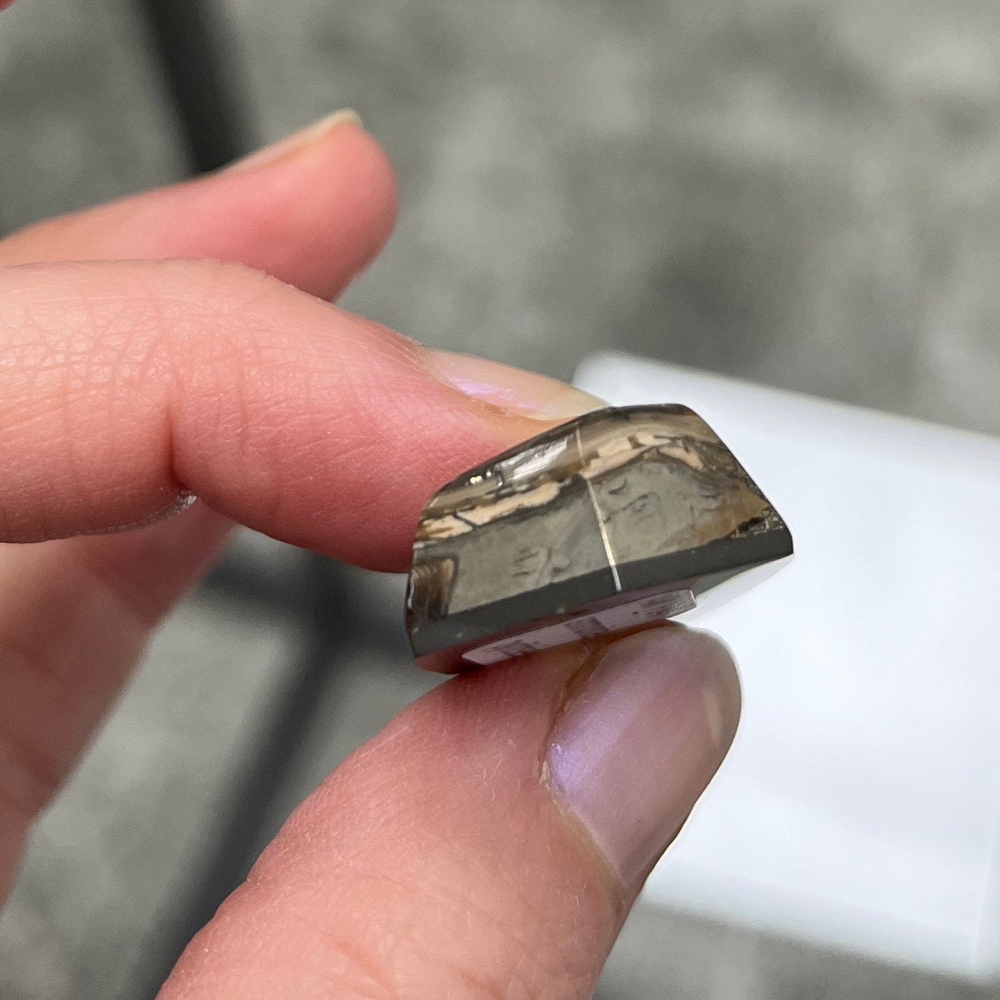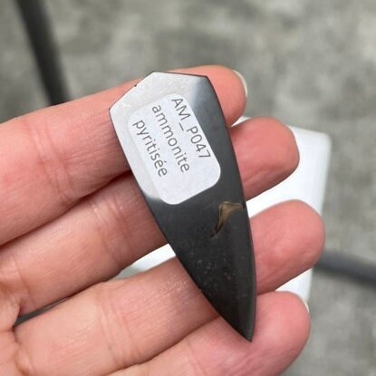 Ammonite pyritisée, AM_P021, taille cabochon, 61x41x10 mm; 37g;