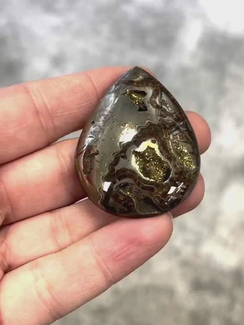 Ammonite pyritisée, AM_P006, taille cabochon, 54x42x8 mm; 26.4g;