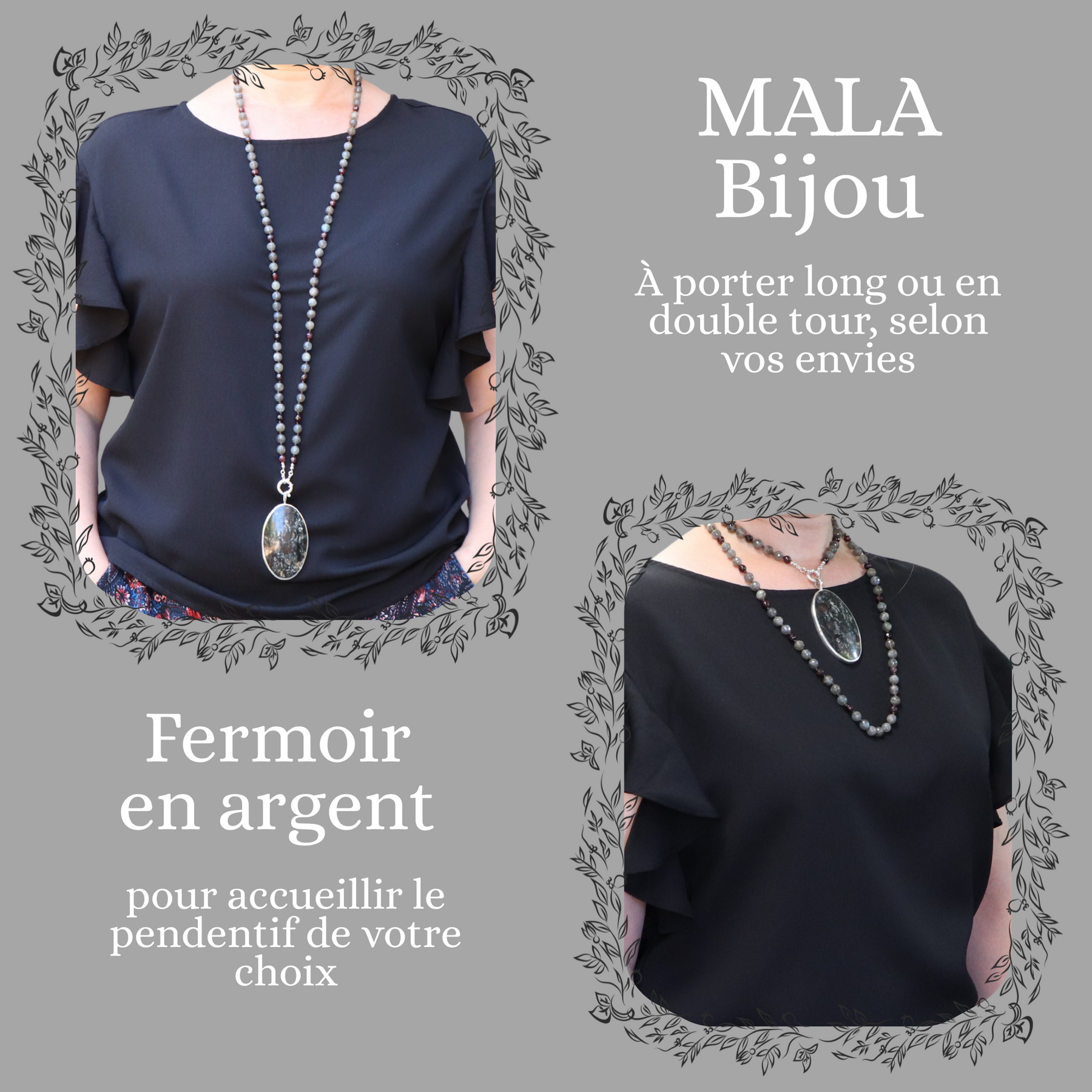 Die 108 cm lange Kette kann je nach Wunsch einfach oder doppelt gewickelt getragen werden. Sie verfügt über einen massiven Silberverschluss , der speziell für den Anhänger Ihrer Wahl entworfen wurde.