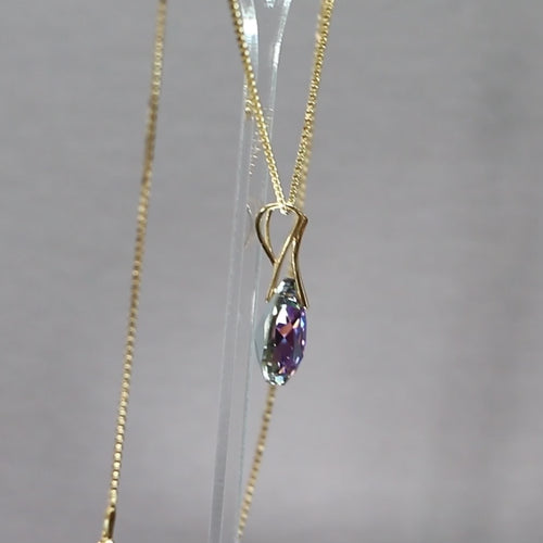 Der Anhänger ist 28 mm lang, die Kette 40 + 5 cm. Der Kristall misst 16 x 10 mm.