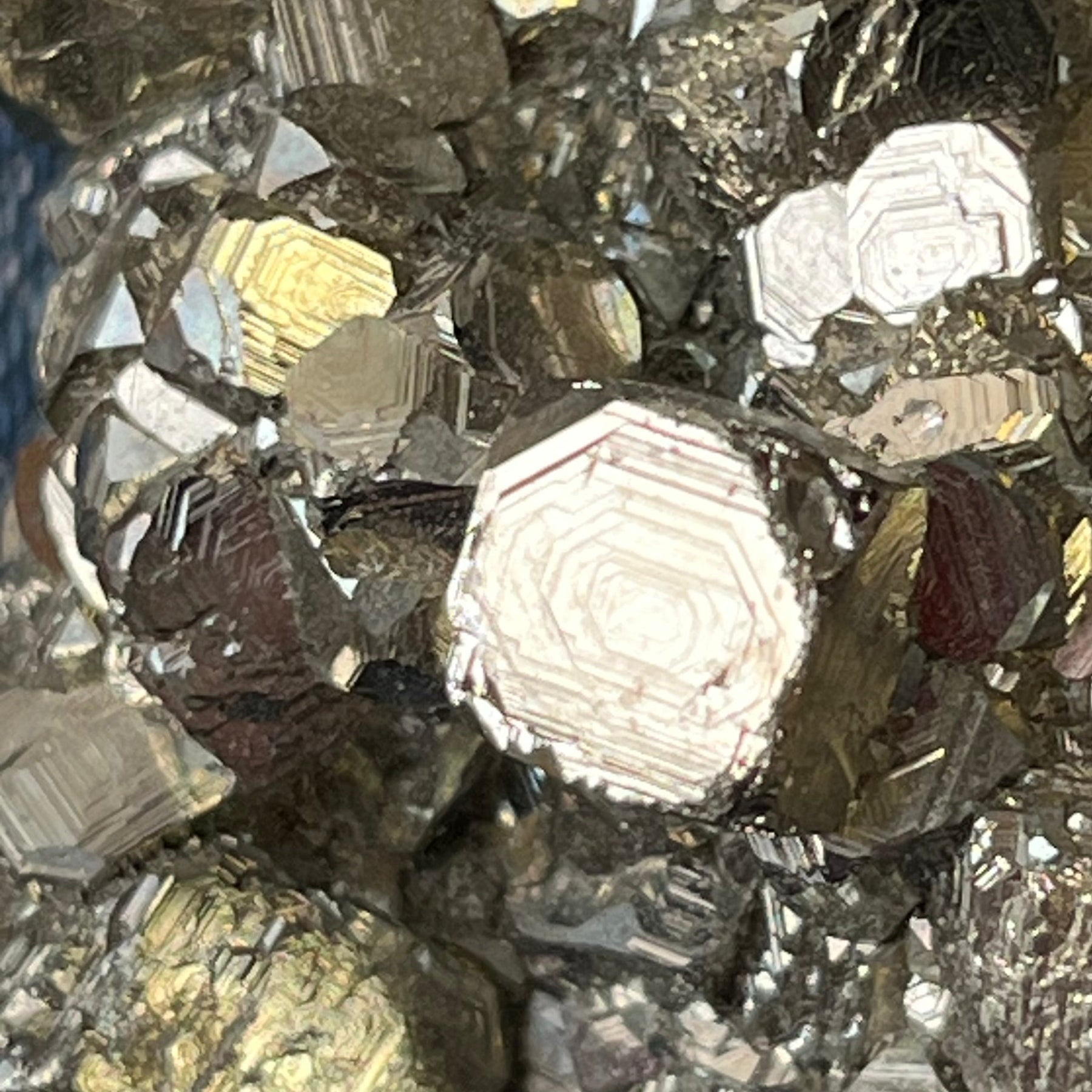 sehr schöne Pyritkristallisation, bei der das Wachstum der Kristalle zu sehen ist.